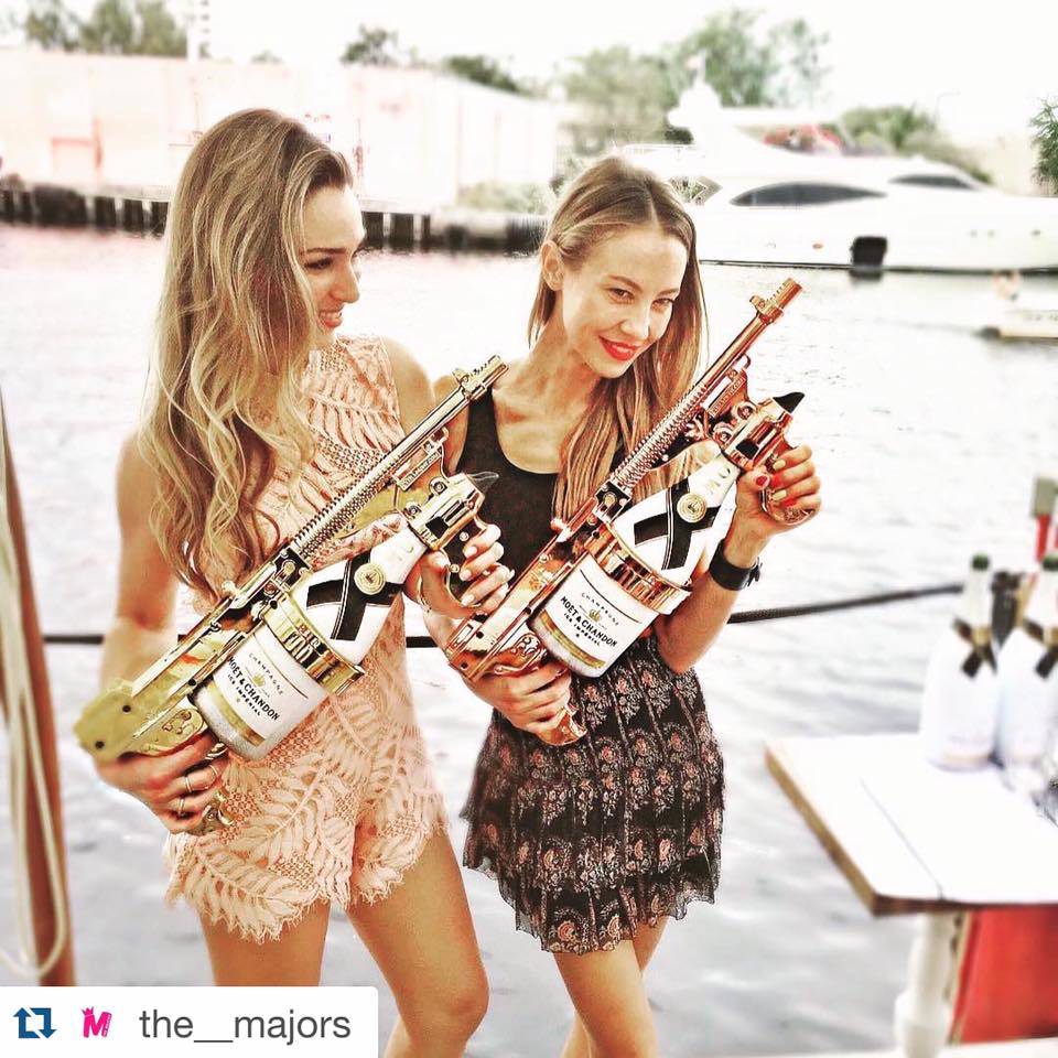 När du inte "slösar" champagne på en dusch kan du Champagnepistol du använder också som innehavare för flaskan och med den häller man "bara" upp champagnen i glas. Den finns i guld, krom och roséguld, och du måste lägga ut runt 100 dollar för det ultimata partyvapnet. 400 euro.