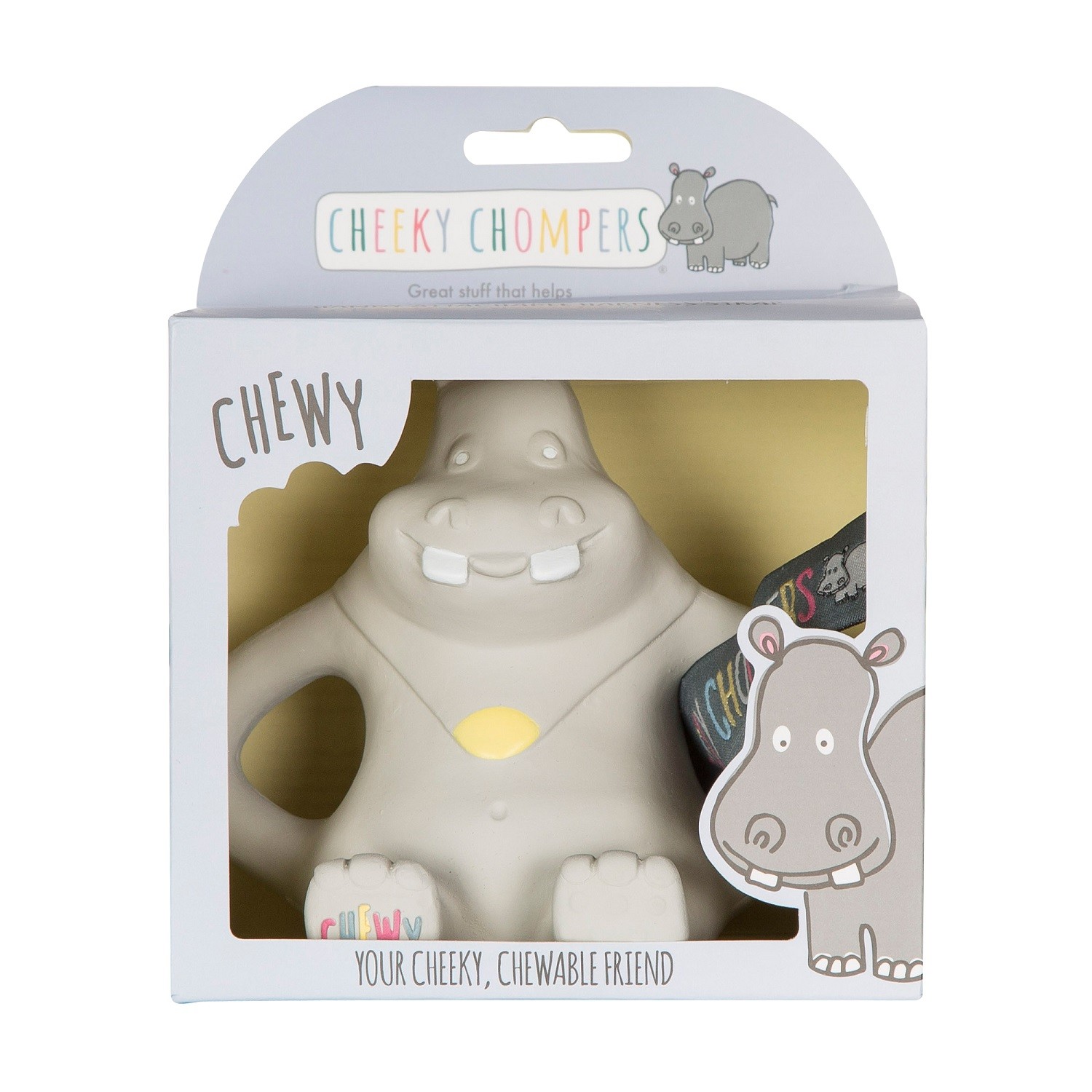 Små barn, se upp, det finns en ny flodhäst i stan! Denna fantastiska och användbara present till alla små spirande entreprenörer kan bli din med lite tur. Svara rätt på prisfrågan så är du med i utlottningen av en av tre tuggleksaker av märket Chewy Hippo. Och vad är egentligen Chewy Hippo? Chewy Hippo är en naturlig, lekfull och tuggbar barnvän. Det är en leksak och naturlig bitring som uppmuntrar barnet att utforska och därmed stärker dess sinnen.