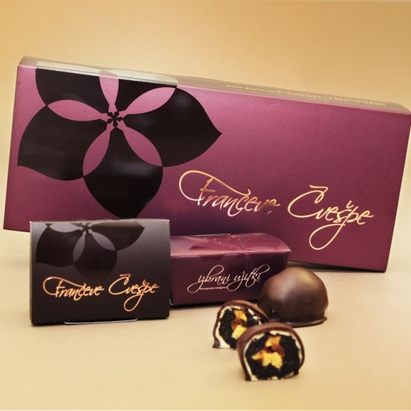 Alla produkter från Dobnik studio följer riktlinjerna för hög kvalitet. De säkerställer detta genom manuellt arbete, naturliga och högkvalitativa ingredienser och användning av äkta choklad. Det finns aldrig och kommer aldrig att finnas konserveringsmedel i deras praliner och choklad, för att äta dem färska skulle oundvikligen döda deras charm. Nya recept testas ständigt i vår chokladbutik; vi förändrar och förbättrar de gamla. Urvalet av produkter följer årstiderna. Just nu är mörk choklad med örter, likörer och konjak på modet. För fullständig njutning med mörk choklad rekommenderar vi ett glas konjak eller sött vin.
