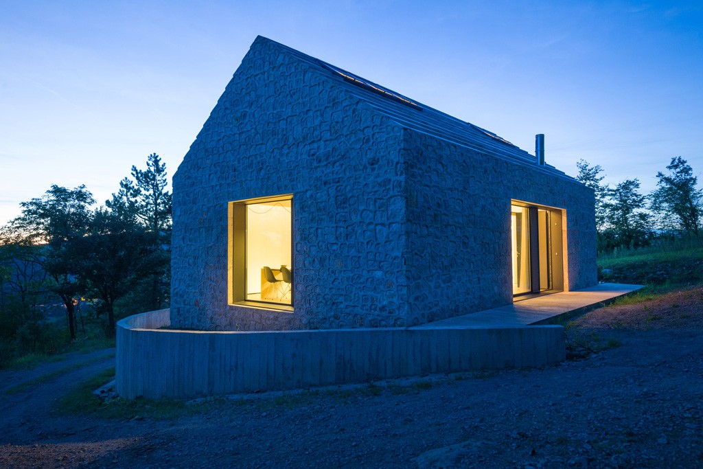 Det moderna karsthuset designat av Dekleva Gregorič arkitekter är ett utmärkt exempel på en modern tolkning av traditionell slovensk konstruktion här.