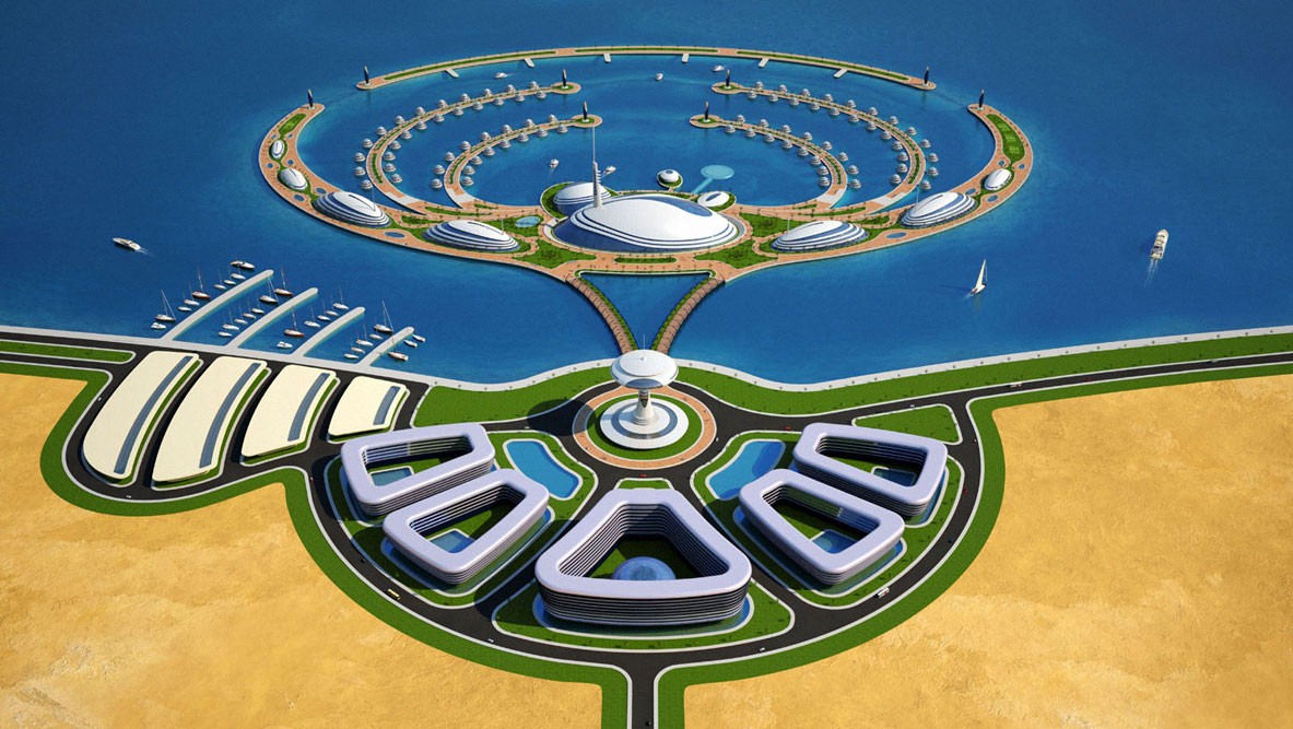 V zemeljskem delu bodo stanovanja, pisarne in marina z modernim in fleksibilnim pristaniščem. Vse strukture se nahajajo v polkrogu okrog centralnega stolpa s panoramsko restavracijo.