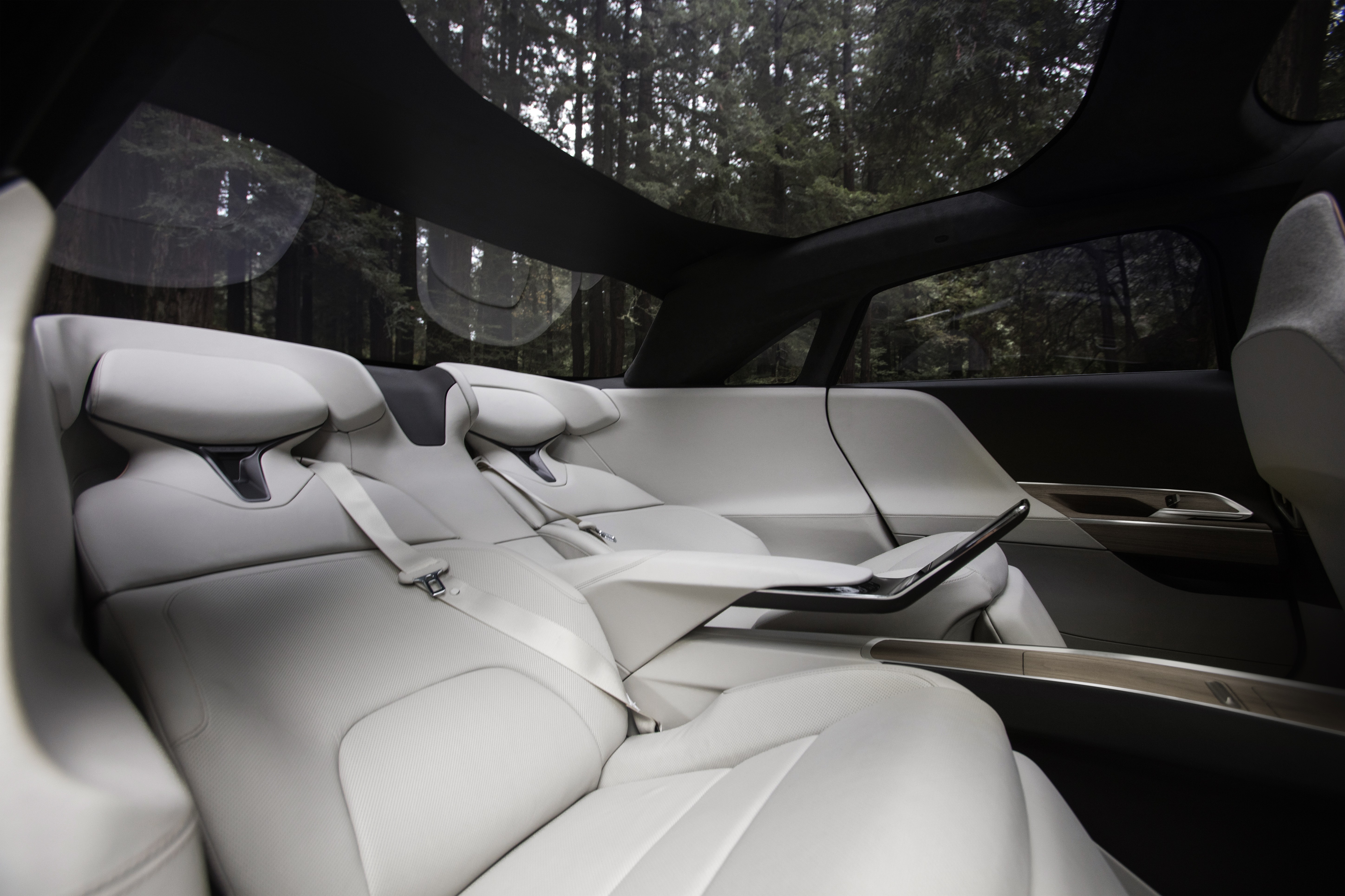 Det finns fyra fristående säten i passagerarkabinen, som påminner om bekväma fåtöljer. Med möjlighet att justera lutningen kan baksätespassagerarna vila bekvämt på långa körningar. Vindrutan är fäst vid panoramatak.