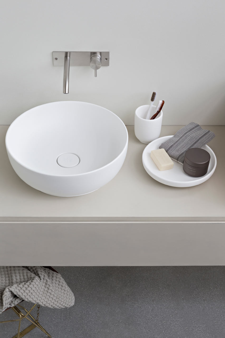 Badrumsmöbelkollektionen Esperanto är perfekt för att möblera små utrymmen, eftersom den består av modulära enheter som passar ihop som ett pussel för att bilda ett helt optimerat badrum.