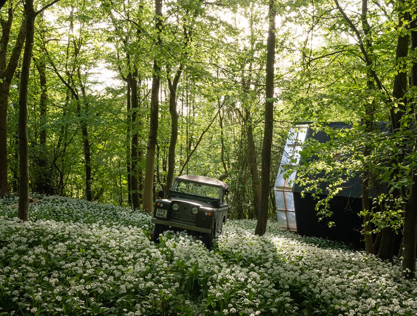 Skogsbostad Trailer, som skyddas från naturkrafter av glasfiber och stål, kan skryta med låg byggkostnad och hög funktionalitet. Det kommer att tjäna dig särskilt som tillfälligt boende och arbetsutrymme. Byggnadens glasfasad låter solens strålar tränga in och ger en behaglig belysning och en lämplig temperatur i rummet.