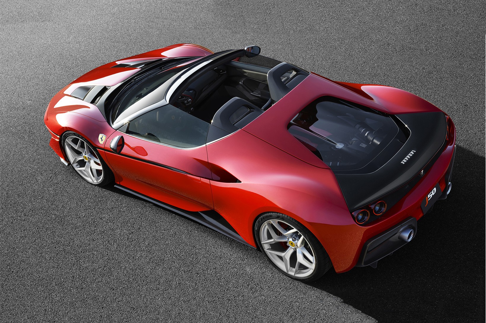 Ferrari J50 är designad som targa, en kroppsstil som var särskilt populär på 1970- och 1980-talen. Han kan enkelt och manuellt avtagbart kolfibertak. Den står på 20-tumshjul. Han gömmer sig under huven 3,9 liters superladdad bensin V8-motor, som klämmer ur sig själv 681 hk (500 kW) och driver den röda pilen upp till hastighet 365 km/h. Att ändra formen medförde också förbättringar inom aerodynamiken.