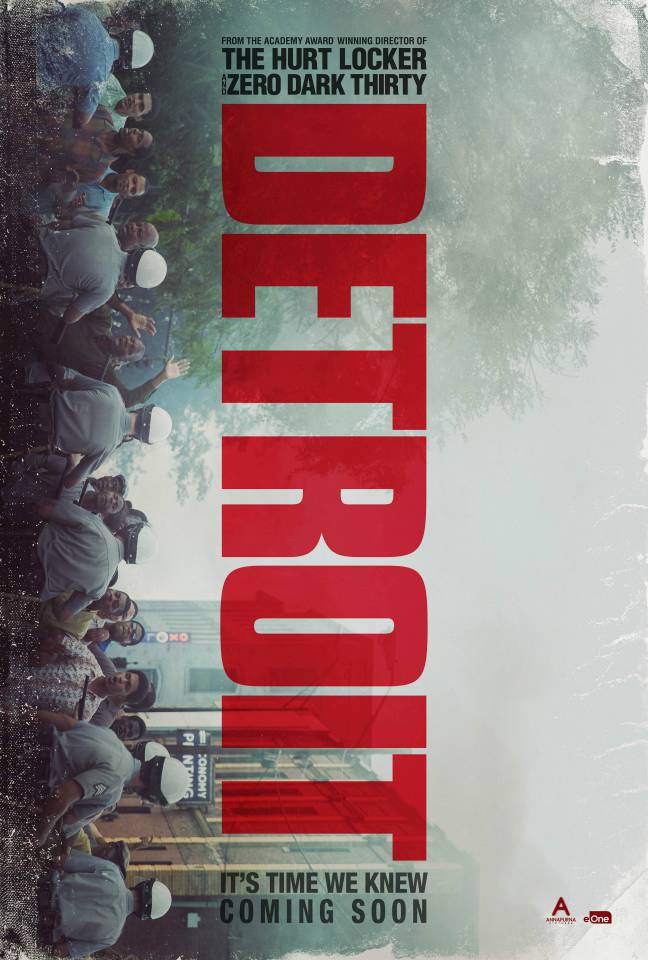 Regissören för filmerna Bomb Mission och 12:30 - Covert Operation Kathryn Bigelow återvänder till den vita duken med filmen Detroit, som tar oss till Motown (bilstad) 1967, när rasupplopp bröt ut där och krävde många offer. Filmen är baserad på de sanna händelserna i ett av de värsta upploppen i modern amerikansk historia.