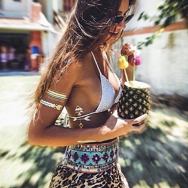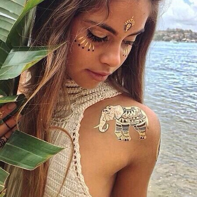 Tillfälliga tatueringar gör comeback. Och inte bara för barn. Om vi uppmärksammar de senaste skönhetstrenderna, kan vi redan märka att många kvinnor dekorerar sina kroppar med alla typer av guld och metall tillfälliga tatueringar eller så kallade "flash tatueringar". Det är dags att dekorera våra kroppar inför sommaren.