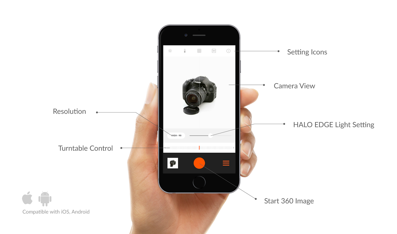 Vse, kar morate storiti, je, da povežete pametni telefon z vrtljivo ploščo, postavite telefon na tripod, v aplikaciji določite ločljivost, svetlost in druge želene nastavitve, pritisnete na gumb za začetek, telefon in plošča, ki komunicirata v Blåtand jeziku, pa bosta od tu dalje vse storila sama, tudi zlepila posamezne fotografije v panoramski posnetek. Končali boste s profesionalnimi table top posneti, ki se jih ne bi sramoval niti profesionalni fotografi. Za dodatno popolnost poskrbi svetlobni sistem Halo Edge na prednji strani mize, ki zabriše vse meje med fokusnim predmetom in okolico.