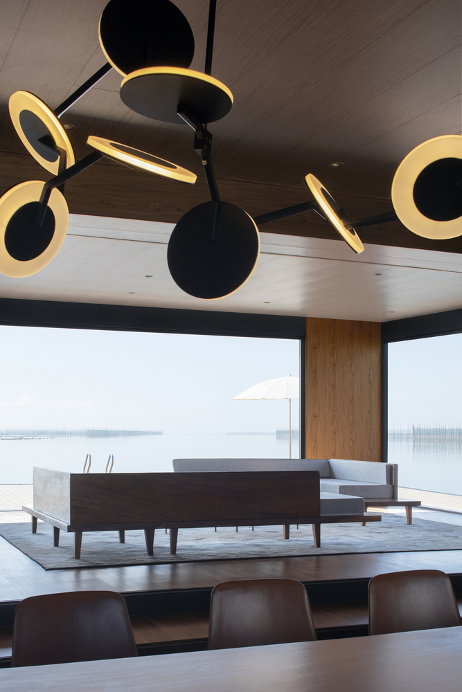Prostor, velik 500 kvadratnih metrov, je opremljen z dnevno sobo, tremi sobami za goste in kuhinjo. V vsaki sobi je naravna svetloba, ki prehaja skozi velike steklene površine. Interiör je preprosta, osnovni ton barve lesa pa ustvarja toplo in prijazno vzdušje. Hotel ima tudi zunanji masažni bazen, balkoni so opremljeni s skrbno izbranimi mizami in stoli, poleg pa so za vsakodnevno rekreacijo privezani čolni in kajaki.