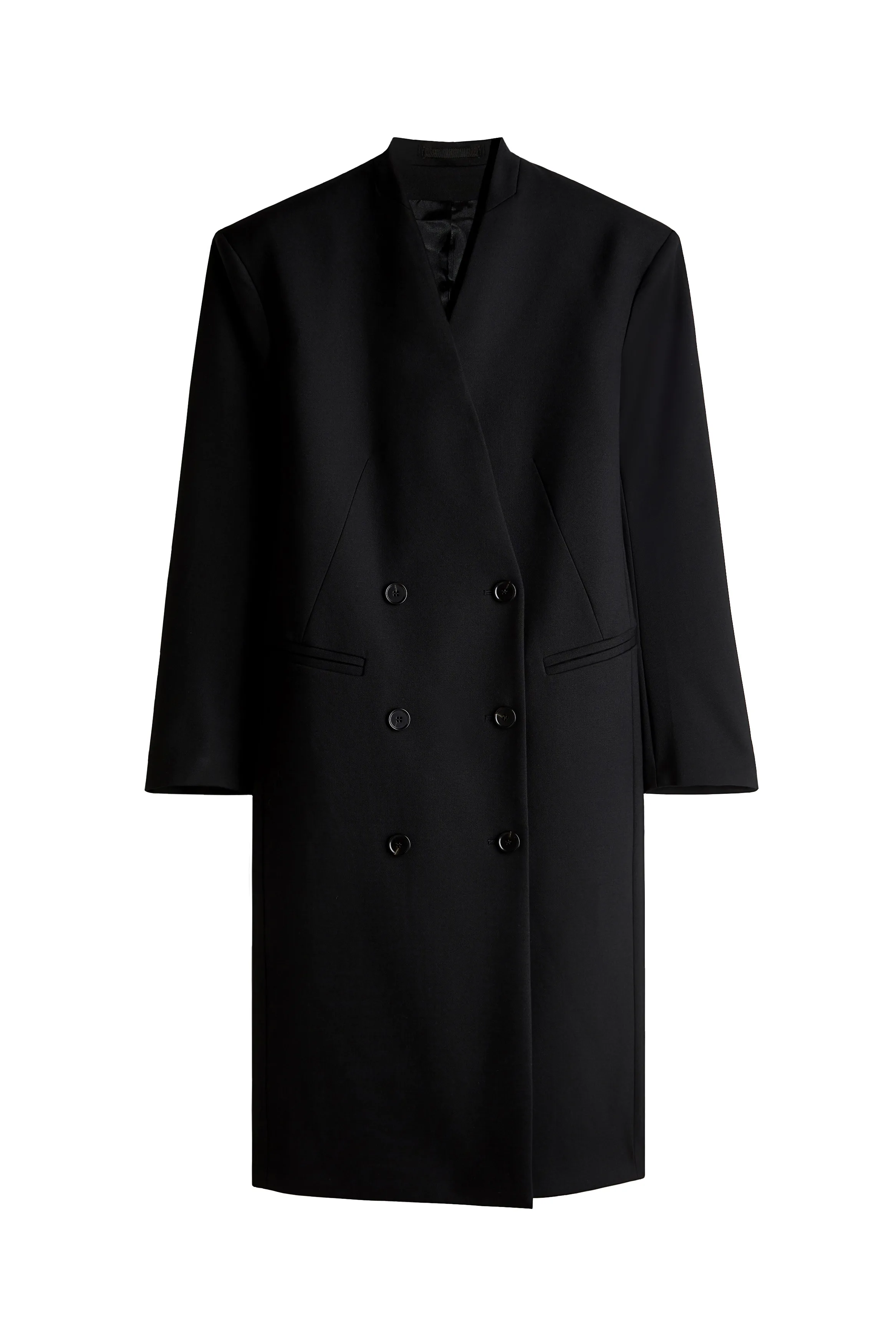 Nyckeldelarna i kollektionen inkluderar en lång, kraglös, dubbelknäppt, skräddarsydd kappa som skapar en skulpturell look. Läderversionen av trenchcoaten är höftlång och har en oversized passform för lager och komfort. För älskare av lättare kläder finns en voluminös trenchcoat gjord av material som liknar en vindjacka med hög krage som skyddar mot vårvindar.