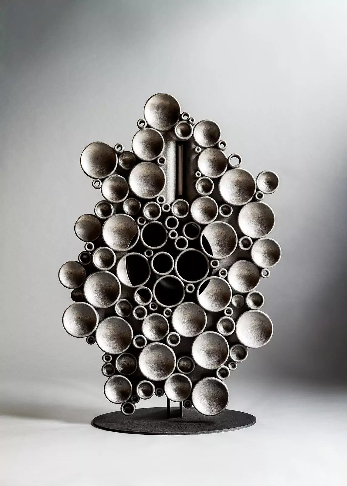 Oswalds Mill Audio högtalare (OMA) Ironisk högtalare utmärker sig industriell design av designern David D'Imperia, och de överraskar inte bara med sitt utseende, utan också med sin prestation. Intressant form imiterar ljuddiffusorer, som finns i professionella musikstudior och radiostationer. Fallet görs med en krävande process. Varje högtalare formas först skrivas ut med en 3D-skrivare, och formen rinner gjutning av grafitgjutjärn förstöra fullständigt.