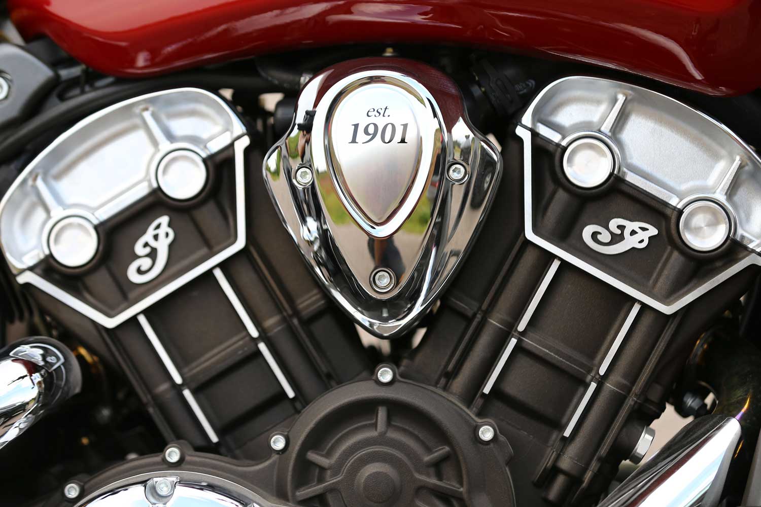 Indianen av 2015 års modell har behållit den karakteristiska robusta trefaldiga formen av motorcykelns hjärta, som var tillägnad ram i sin helhet tillverkad från aluminium, vilket gör den till den lättaste motorcykeln i sin klass. Drivningen tillhandahålls av en 1,1-liters vattenkyld motor V-twin fyrcylindrig motor, som utvecklar en maximal effekt på 100 hk, och en sexväxlad växellåda tar hand om kraftöverföringen till vägen överväxellåda, och bromsar med ABS-system.