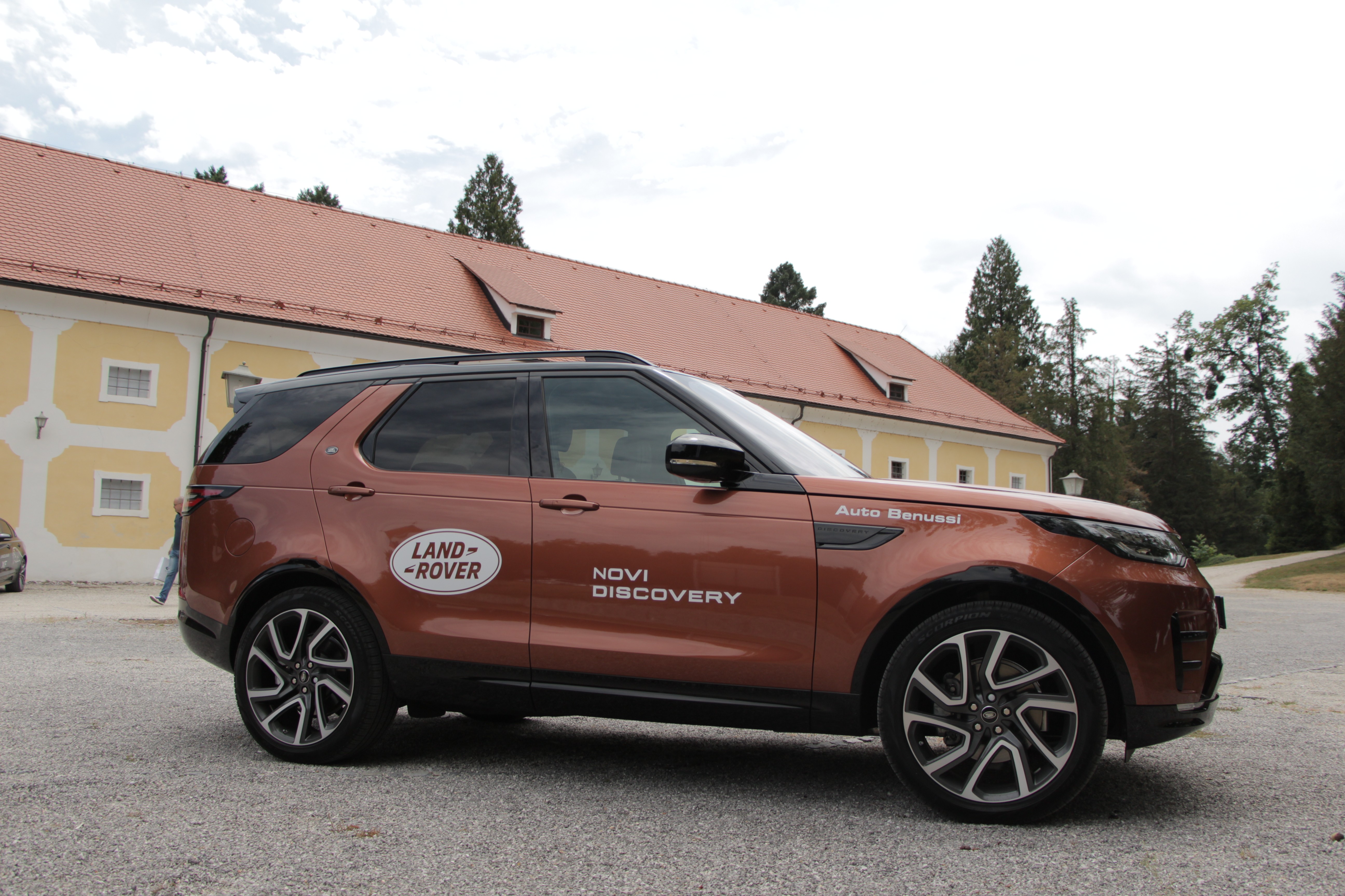 Kot najbolj aktualen model je bil še posebno poudarjen novi Land Rover Discovery. Slednji je že peta generacija tega priljubljenega terenca. Karoserija je zdaj narejena iz aluminium, kar pomeni, da je celoten avtomobil za neverjetnih 480 kilogramov lažji od svojega predhodnika. Karoserija je zdaj bolj zaobljena in ne tako tipično oglata, s tem pa želijo vplivati na nove kupce, ki bi se odločili za nakup modela Land Rover Discovery. V primerjavi z drugimi luksuznimi terenci ima Discovey izmed vseh najboljše terenske sposobnosti in lahko zapelje v vodo do 900 mm globine. V notranjosti najdete kar 21 odlagalnih površin, katerih skupna prostornina je 45 litrov. Če k temu dodamo še 2500 litrov prtljažnega prostora in 3500 kilogramov vlečne sile, lahko ugotovimo, da je Discovery kljub vsemu luksuzu še vedno zelo resen terenec.