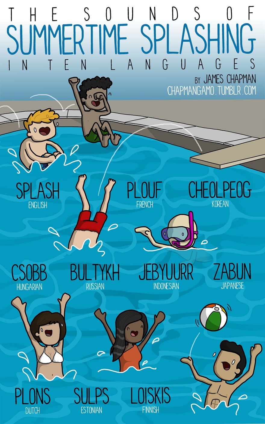Ilustrator in študent psihologije James Chapman mogoče ni poliglot, je pa zato pripravil prikupne ilustracije, ki jih je pospremil z ord, ki opisujejo zvok določenega dejanja oz. medmete, ki jih uporabljamo za izraz določenega duševnega stanja.