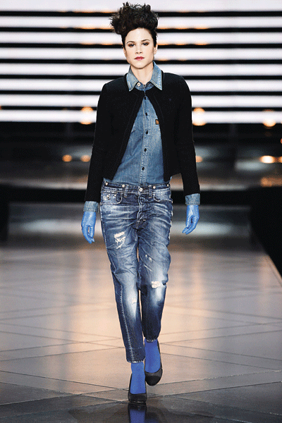 Det populära märket av det populäraste blå tyget, G-Star, lyckades inkludera ett brett utbud av jeans i alla möjliga nyanser i sin höstkollektion. Indigoblått och brett, slitet och slitet, blekt och kort, svart och baggy, grått och tight och i ett stycke från topp till tå. Jeans är mångsidiga och tidlösa. De har sällskap av förföriska blusar, polotröjor, skinnjackor och ponchos i damkollektionen, dunjackor, hoodies, kappor, stickade tröjor och jeansjackor i herrkollektionen. Flickor kommer att lysa upp hösten med massiva halsdukar, höga stövlar och långa läderhandskar, medan pojkar kommer att bära färgglada buners, kepsar och stickade handskar.
