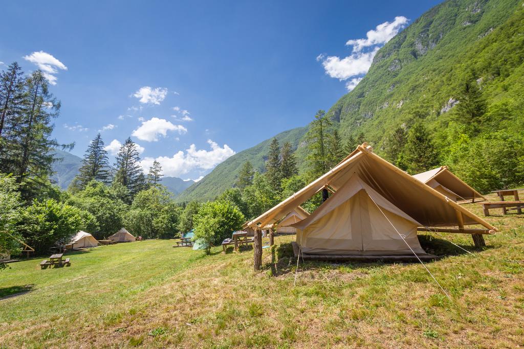 Nastanitev nudi prostor za peko na žaru in skupno kuhinjo. Det finns också skupna jedilnica. V sklopu nastanitve in njeni okolici lahko uživate v številnih aktivnostih, kot so vožnja s kanujem, rafting och spust po jeklenici. Golf klub Bovec je le 4 min vožnje stran, železniška postaja Most na Soči pa je od kampa oddaljena 39,6 km.
