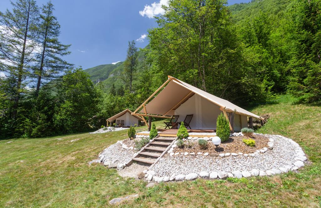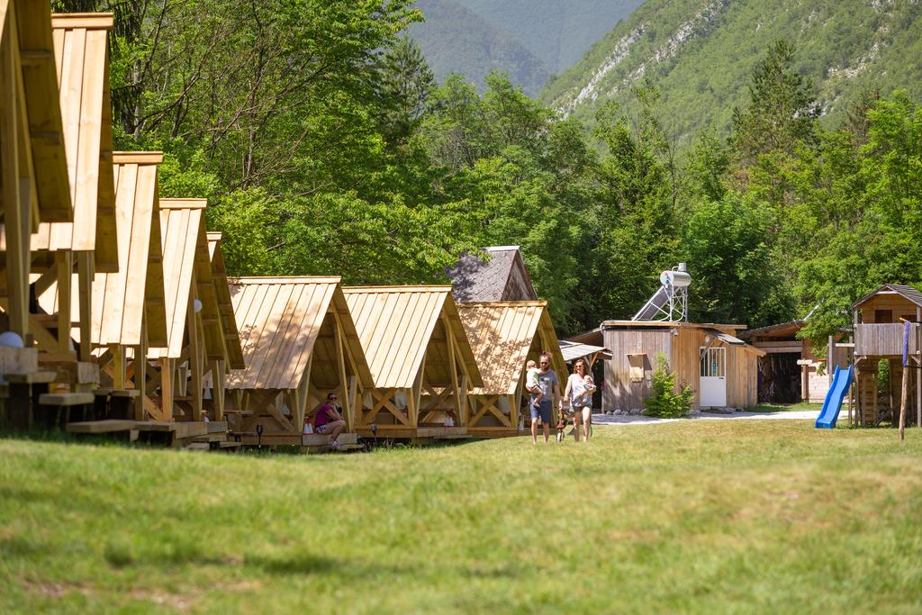 Tako lahko prespite v lesenih hiškah Soške sanje (za 2 ali 3 osebe ali za 4+ osebe) s šarmantnimi belimi šotori. Vsi šotori so opremljeni z ročno izdelanimi posteljami, nočnimi omaricami in prostorom za prtljago. Pred šotorom je terasa, ki jo krasijo leseni sedeži in mizica za preživljanje romantičnih večerov pod zvezdami.