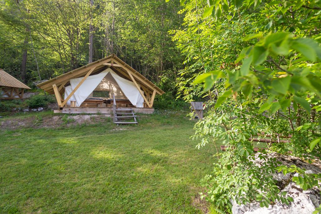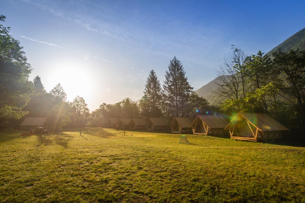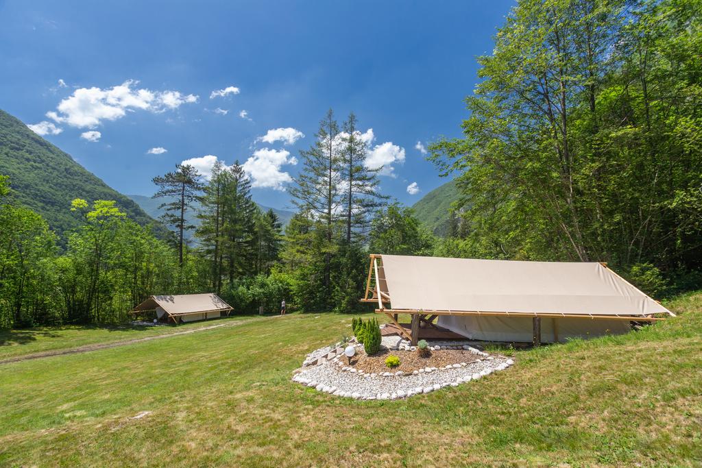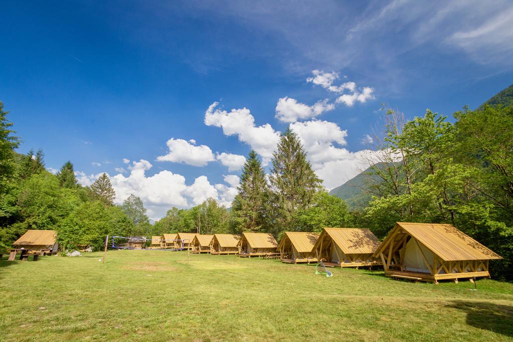 Nastanitev nudi prostor za peko na žaru in skupno kuhinjo. Det finns också skupna jedilnica. V sklopu nastanitve in njeni okolici lahko uživate v številnih aktivnostih, kot so vožnja s kanujem, rafting och spust po jeklenici. Golf klub Bovec je le 4 min vožnje stran, železniška postaja Most na Soči pa je od kampa oddaljena 39,6 km.