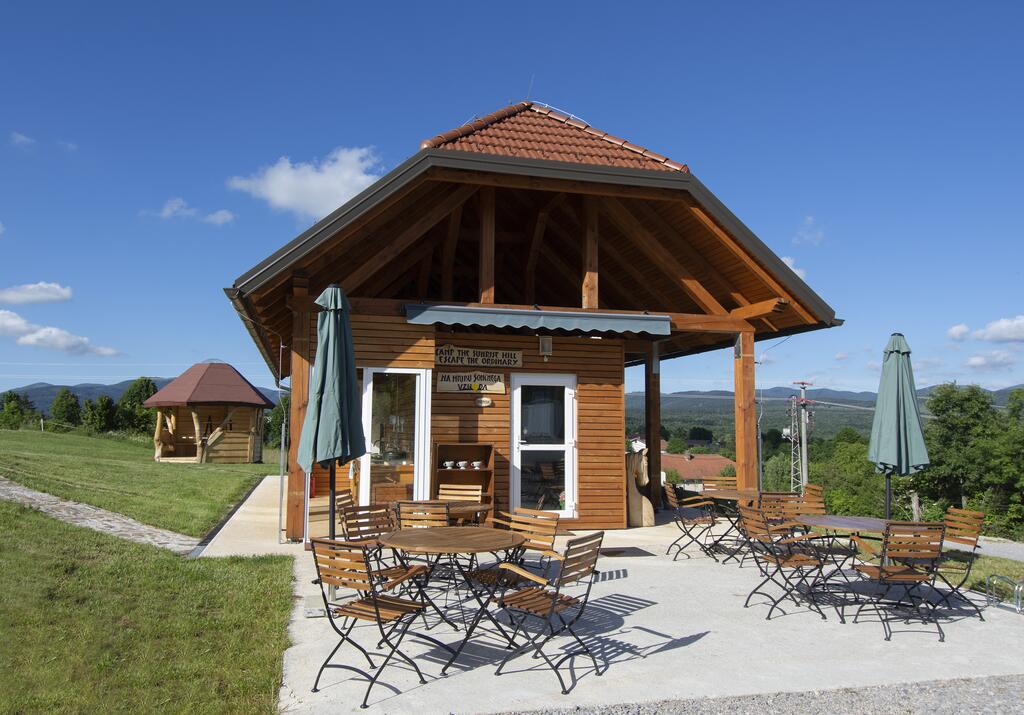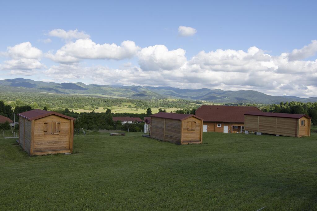 Poleg klasičnega kampiranja vam ponujajo tudi nočitve v tradicionalnih lesenih glamping hišicah. Te imajo prostor za sedenje, jedilni predel ter popolnoma opremljeno kuhinjo z različnimi kuhinjskimi pripomočki, vključno s hladilnikom, kuhalno ploščo in opekačem za kruh. Kopalnice s prho so nameščene zunaj hišic. Pa ne skrbite, poskrbljeno je tudi za posteljnino in brisače. Na voljo sta vam hišica za tri osebe och så vidare družinska hišica s pogledom na gore.
