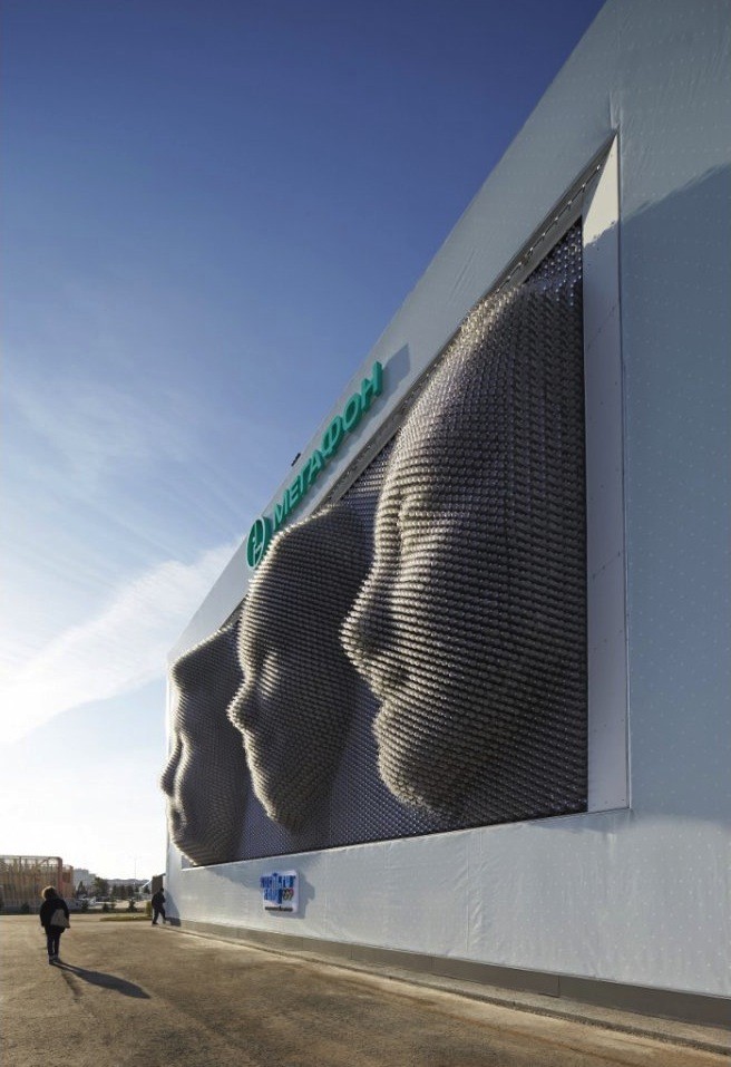 En 2 000 kvadratmeter stor kub designad av ett ryskt telekommunikationsföretag Megafon, är prydd med en rymlig kinetisk panel som, med hjälp av en närliggande fotoautomat, förvandlar digitalt skannade foton till Besökarnas 3D-ansiktenPorträtt i stil med den populära "selfie"-trenden förvandlas omedelbart till episka arkitektoniska skulpturer.