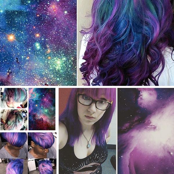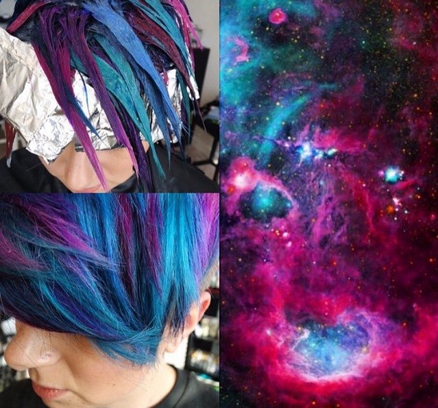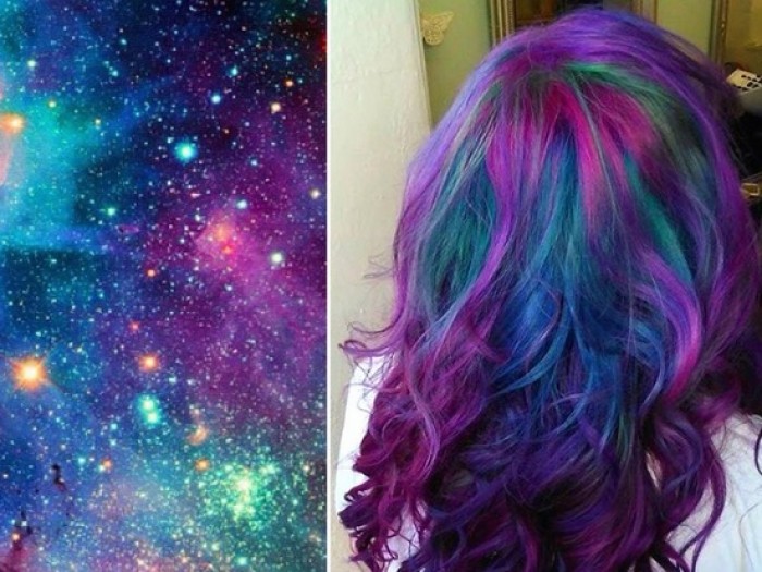 Grå och vita nyanser är tydligen inte tillräckligt intressanta längre, eftersom kvinnor började färga håret med färgglada färger. Men om färgkombinationer av livfulla färger återigen var en fråga om aktuell inspiration, speglar den nya trenden med hårfärgning rymd och naturfenomen som norrsken. Kvinnor vänder sig nu mot himlen för inspiration och ett motiv på sina huvuden. Och det bästa med att färga håret i rymdens färger? Du har en hel galax av inspiration ovanför dig!