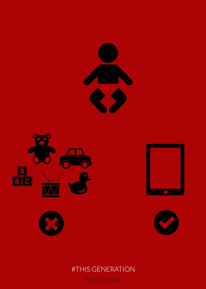 När vi tänker på beroende tänker vi först på droger, alkohol och mat. Tja, åtminstone var det så fram till för några år sedan. På senare år har dock beroende av informationsteknik, det vill säga datorer, mobiltelefoner och internet, kommit i allt större utsträckning. Överdriven användning av internet är kanske det mest akuta problemet, men teknikberoende har många ansikten, och Ajit Johnson har förkroppsligat dem i brutalt ärliga digitala illustrationer som visar vilka slavar vi har blivit under modern teknik.