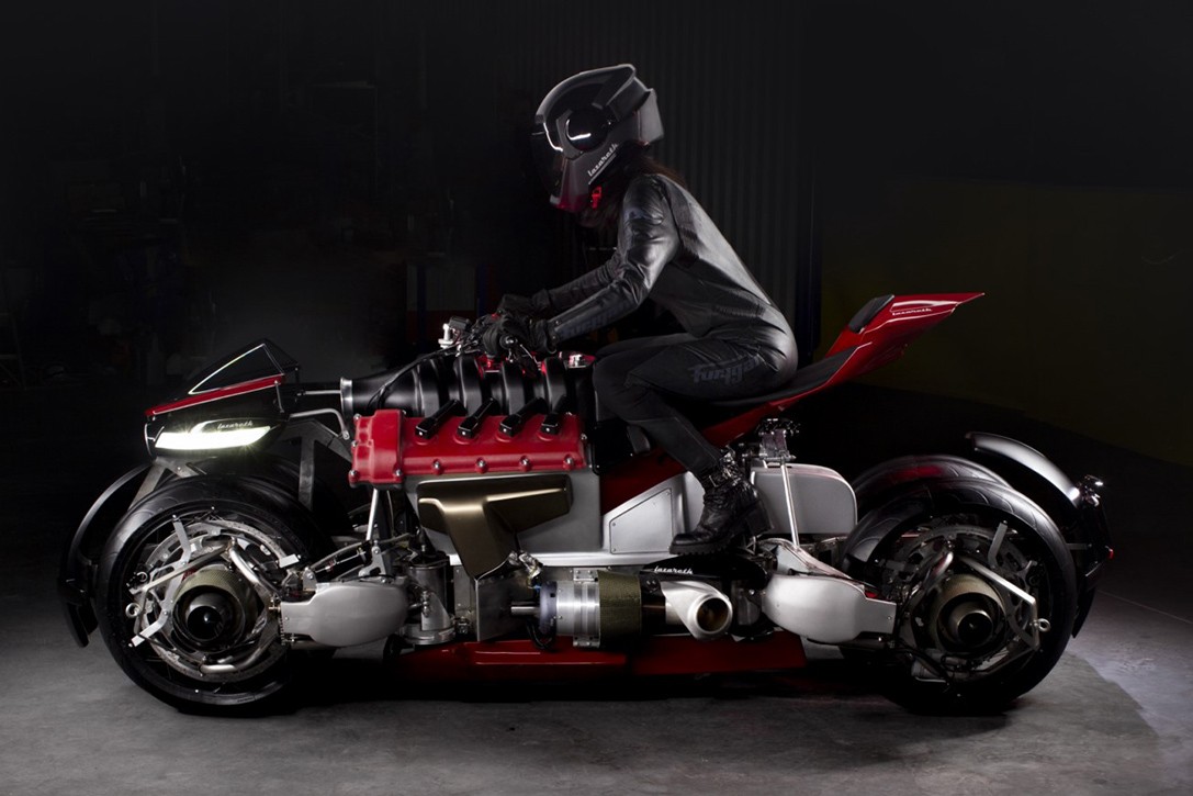 Lazareth La Moto Volante 496 je prvo motorno kolo na svetu, ki se prelevi v quadcopter. Da, prav ste prebrali, motocikel, ki postane dron! Dizajn ostaja nezamenljivo Lazarethovski, tehnologija ki poganja motorno kolo pa je nekaj čisto drugega. Osnovno pogonsko sredstvo je elektrisk motor, med 100 kilometri avtonomije, pri letu pa sodelujejo turbine JetCat, ki so pravzaprav del vsakega kolesa. Te se pomaknejo navzven in v vodoraven položaj in omogočijo motociklu 10 minuter letenja, oziroma lebdenja. Skupna moč turbin znaša kar 1.300 konjskih moči, ki s pomočjo kerozina proizvedejo 2.800 njutnov vzgona. Z enostavnim pritiskom na gumb se turbine postavijo v prvotni položaj in ponovno imamo na voljo motorno kolo. Naredili bodo zgolj 5 primerkov LMV 496, vsak od njih pa bo stal okoli 500 000 euro.