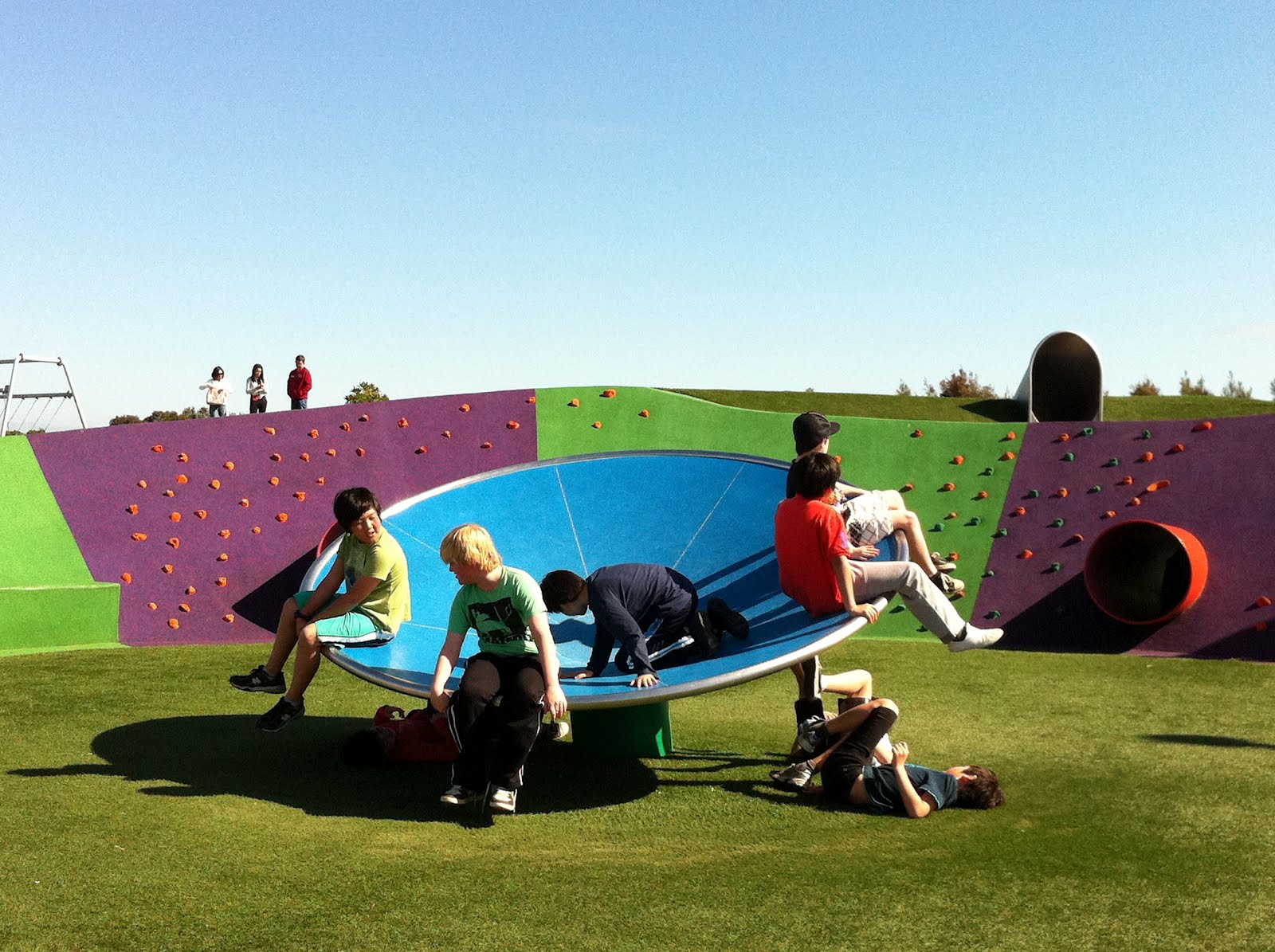 Vi hör sällan att en sådan lekplats omfattar mer än 20 000 kvadratmeter. Blaxland Riverside Park öppnades i somras nära den australiensiska staden Sydney. De gjorde planen för det på designhuset JMD design, som hade i tankarna ett öppet och fritt utrymme utan gränser, där de yngsta skulle använda överskottsenergi genom att springa och spela på intressanta rekvisita.