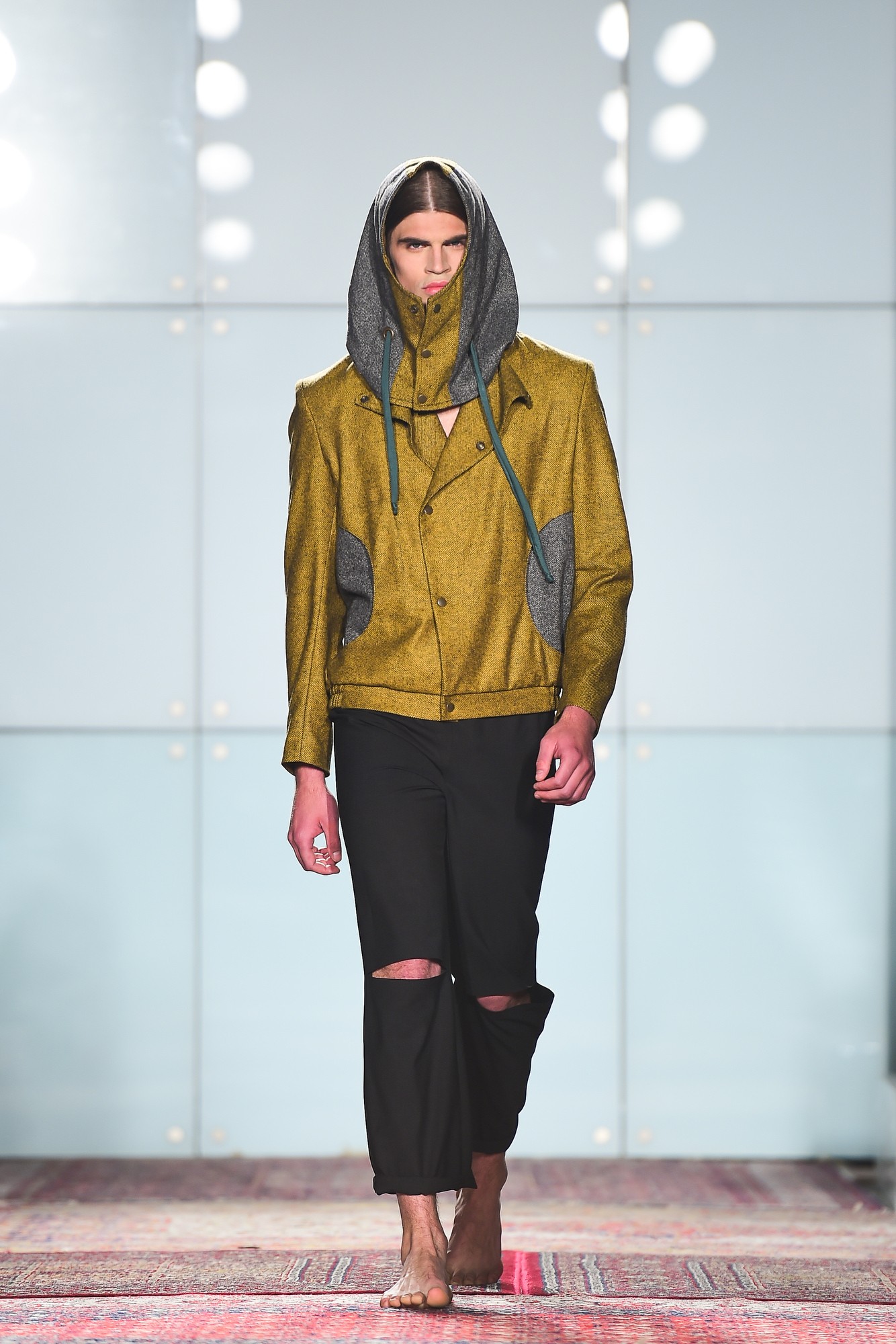 ”Herrkollektionen inspirerades av filmen Oliver Twist, som den fick sitt namn efter. Jag lade stor vikt vid detaljerna som rundar av helheten och presenterar Oliver på ett unikt sätt. Jag rörde mig bort från klassikerna genom att kombinera material som tweed med sportiga snitt, intressanta påsydda fickor i form av en cirkel och penntryck, eftersom man på den tiden inte skrev med kulspetspennor, utan med pennor. Vi känner alla till historien om Oliver Twist, som var tvungen att stjäla för att överleva, vilket också är anledningen till de djupa fickorna på hans byxor. Färgerna är höstliga, kombinerade med grått.”