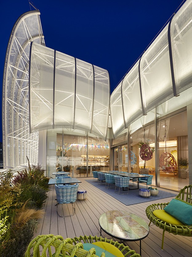 Ekstravagantna pa ne bo le ponudba hrane, ampak tudi celotna estetika ambienta restavracije, ki bo seveda v skladu z blagovno znamko Louis Vuitton. Oblikovalec Tokujin Yoshioka je bil zadolžen za oblikovanje servirnih pladnjev, ki bodo odsevali karakter in vizualno podobo ikonične blagovne znamke LV.