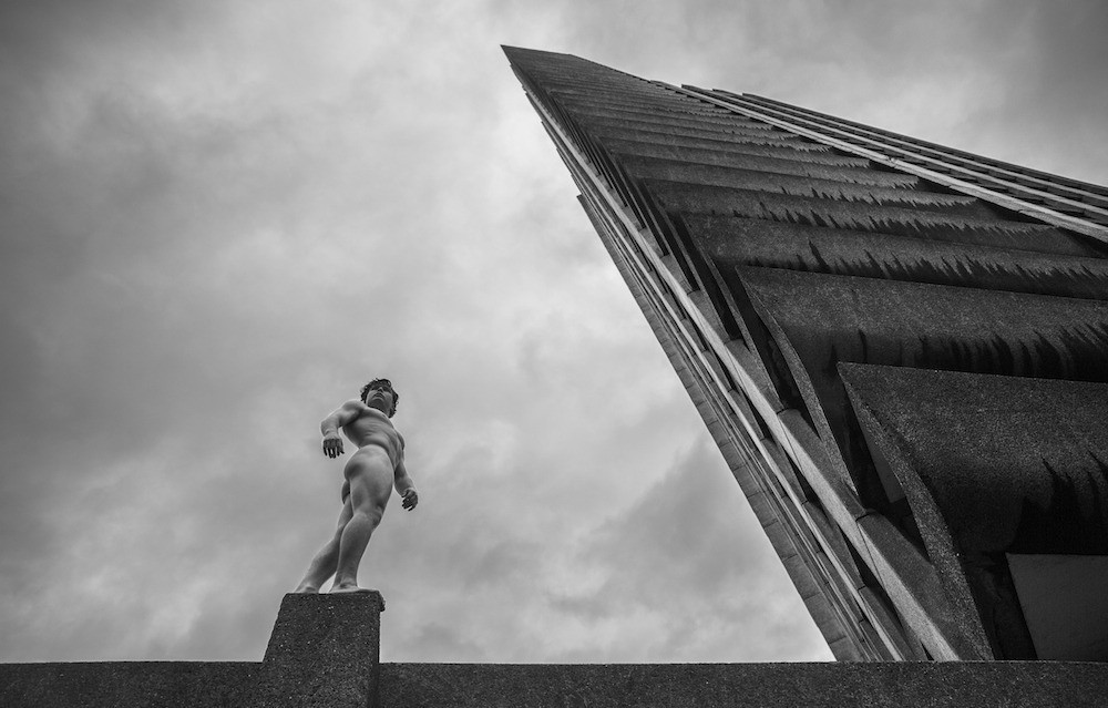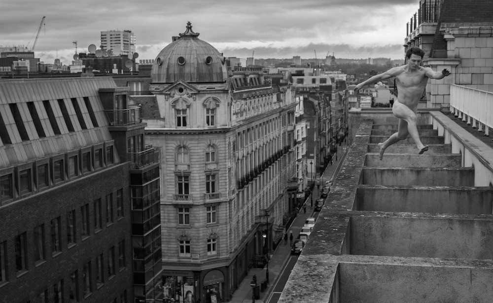 Sportsman Jason Paul är med sin nakna kollega och världsmästare i freerunning eller tomgång Tim Shieff, skapade en fantastisk fotografisk serie Man & Mortel. Schieff klättrade upp på något i processen de vackraste byggnaderna i London, där han konfronterade arkitekturen och därigenom kontrade modern grekisk arkitektur, full av statyer och monument från den antika världen. Mycket av London-arkitekturen har tre element som står i stark kontrast till den atletiska människokroppen: fyrkantighet, styvhet och linjäritet.