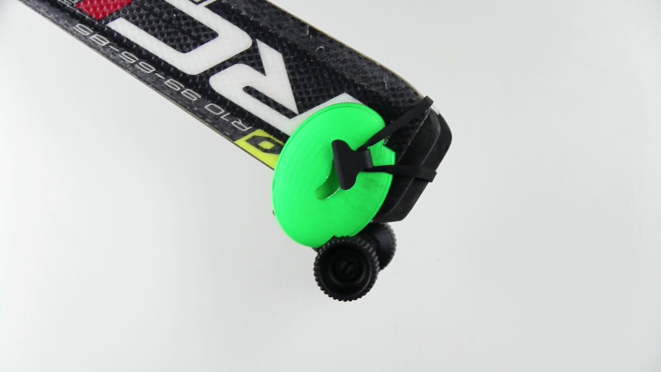 Skiddi är äggformad tillbehör med hjul fickstorlek, som klamrar sig fast i skidans svans och gör att du kan bära den med dig istället för att bära den på axlarna. Den finns tillgänglig i olika färger, och det är nödvändigt att dra av för det 33 euro.