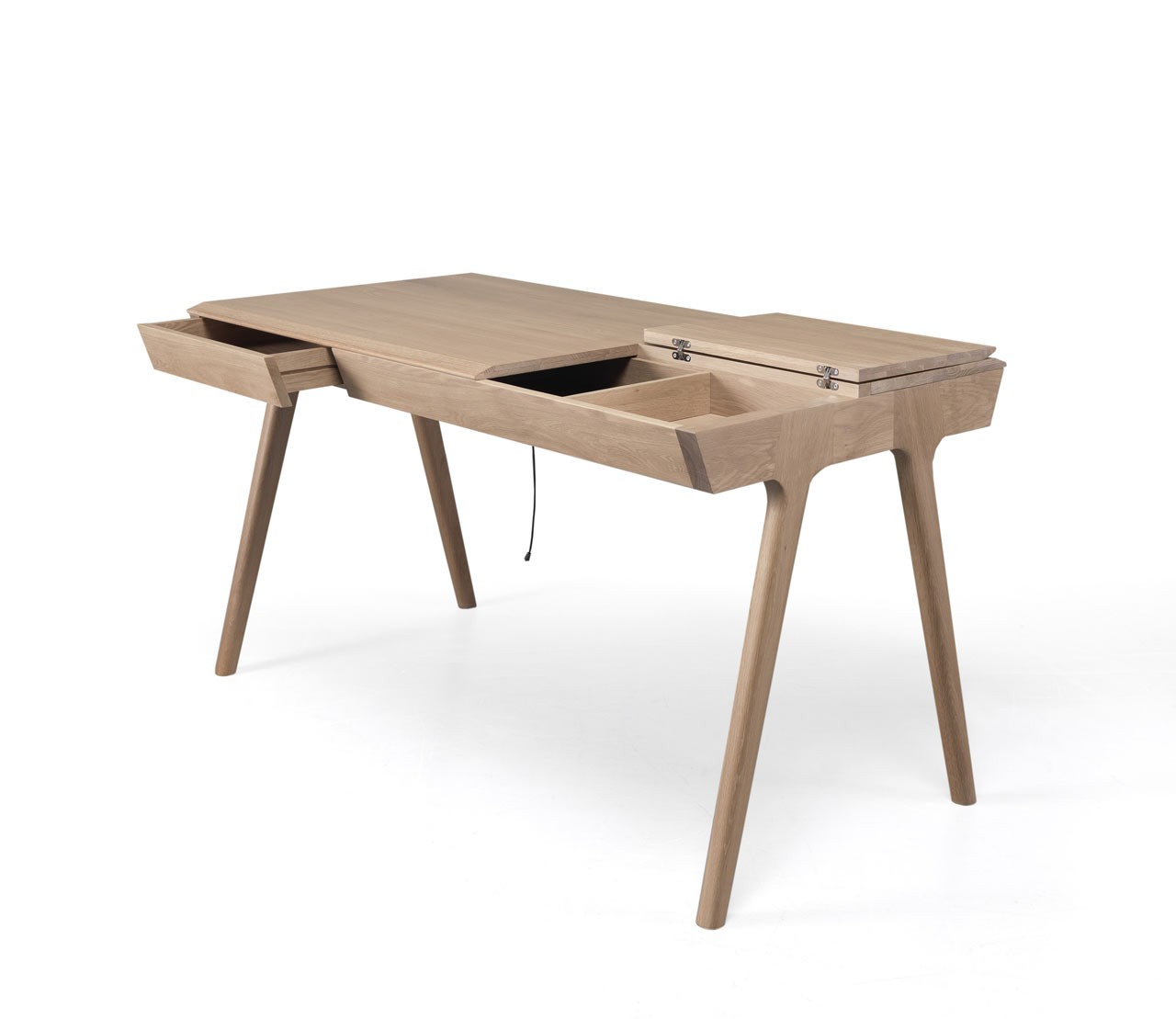 Metis är ett kompakt bord av massivt trä, som med fantasifullt designade förvaringsutrymmen hjälper till att upprätthålla en snygg och organiserad arbetsmiljö. Metis har inte bara tre lådor, utan med genomtänkt designade hemliga fack döljer den också alla elkablar som annars förstör arbetsytorna och erbjuder mycket förvaringsutrymme.