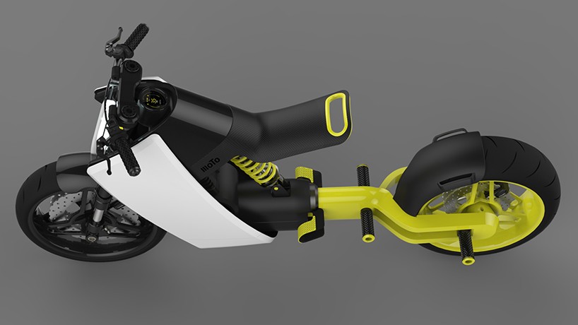 Konceptni črno-belo-rumeni motocikel Moto Izraelca Amirja Elias je njegov zaključni projekt študija inženirstva in oblikovanja. V mestih, ki so natrpana in redno ujeta v prometni krč, je takšna oblika prevoza več kot dobrodošla, saj ne ponuja prevoza zgolj eni ali dvema, ampak kar till tre personer.