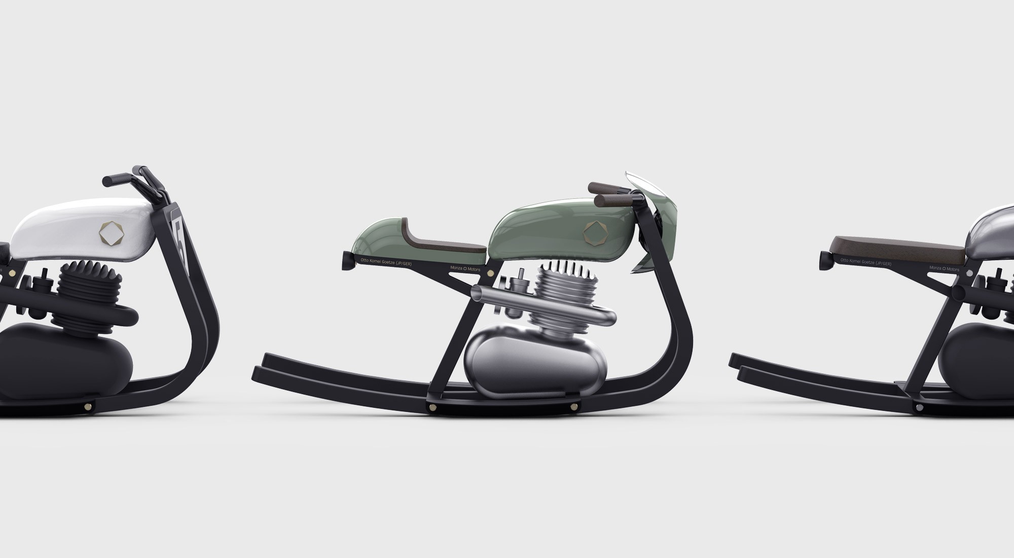 Nu kan du imponera på din son eller dotter med en alldeles speciell motorcykel som du kan placera direkt i deras vardagsrum. Moto Rocker, som han designade Felix Monza, liknar en riktig racermotorcykel. Motorns slagvolym är 125 kubikcentimeter och den har även fram- och bakljus. Som tur är för dig kommer ditt barn inte att kunna köra ut i det okända eller ens råka ut för en olycka med den.