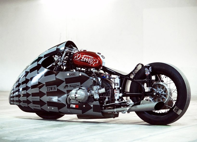 Da so ”drag bike” Sprintbeemer på Lucky Cat Garage pripravili za dirke, so iz prvotne konstrukcije odstranili prednje vilic in jih nadomestili s tistimi iz BMW-jevega motocikla R75/5. Tudi sicer je ves motocikel narejen iz različnih delov, zaradi česar deluje, kot da so ga sestavili iz stvari, ki so jih našli ležati naokoli. Dizajn prednje aerodinamične obloge je delo Bennyja Robinsona, kreativnega direktorja Edwin Europe, zadaj pa mu poudarek daje starinska ”J.Lojevska” 18-colska M&H pnevmatika, ki si jo je obulo Moradovo kolo.