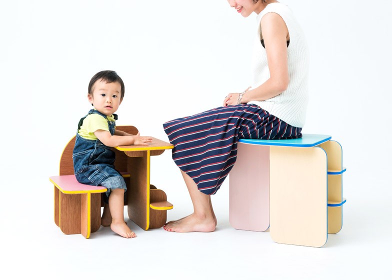 Den japanska arkitektstudion Torafu har designat en barnmöbel, Dice, som kan användas på många olika sätt, som bord eller stol.