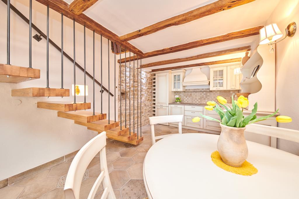 Ta pravljična kamnita hiša se nahaja v središču slikovitega Grožnjana. Razprostira se na treh nadstropjih in lahko sprejme štiri osebe. Gostom sta na voljo dve sobi in skupni prostori za druženje, kot sta kuhinja in jedilnica, lahko pa se zberejo tudi ob kaminu. Hiša ima talno gretje in klimatsko napravo, tako da lahko izbirate, v katerem letnem času jo želite obiskati.