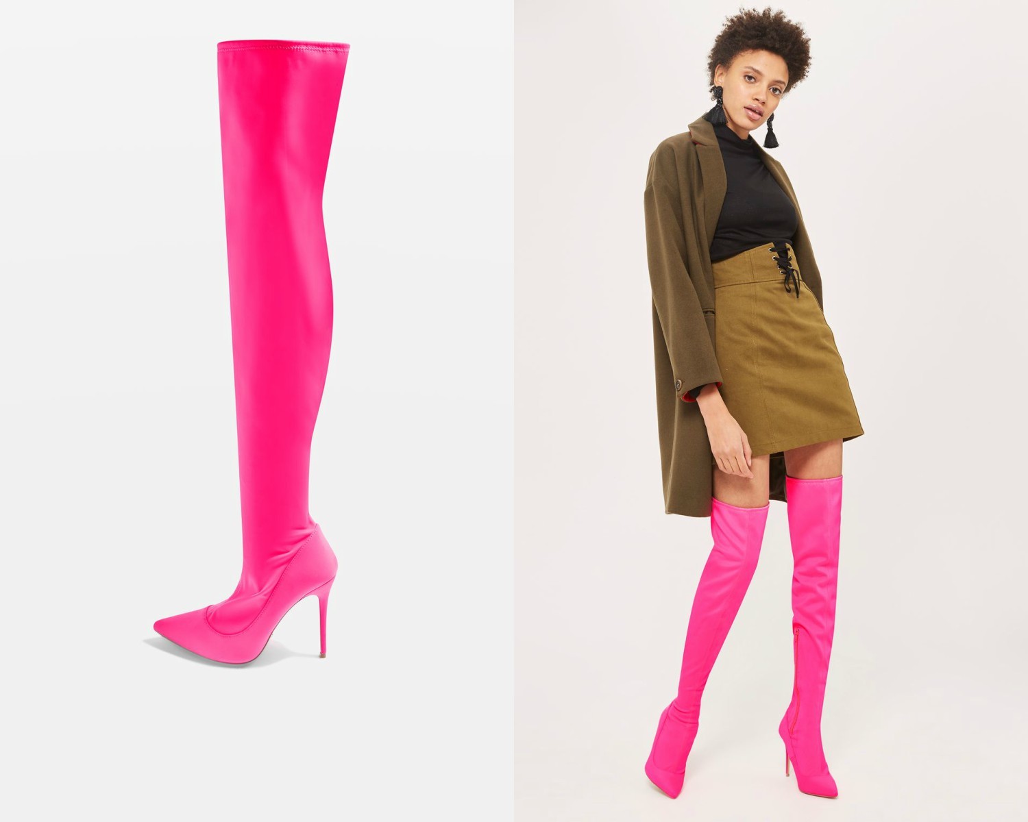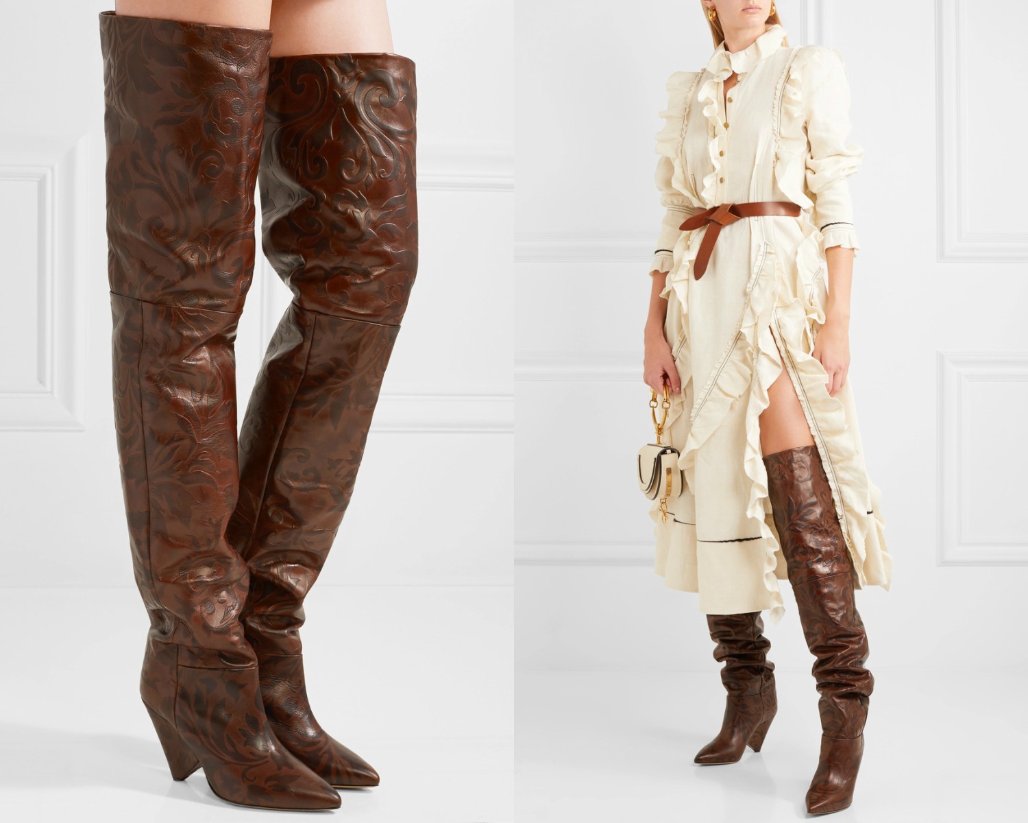 Seveda imajo čudovite primerke škornjev čez kolena tudi Zara in H&M, a mimo nekateri lepotcev, ki močno presegajo naše finančne zmožnosti, pač preprosto ne moremo.