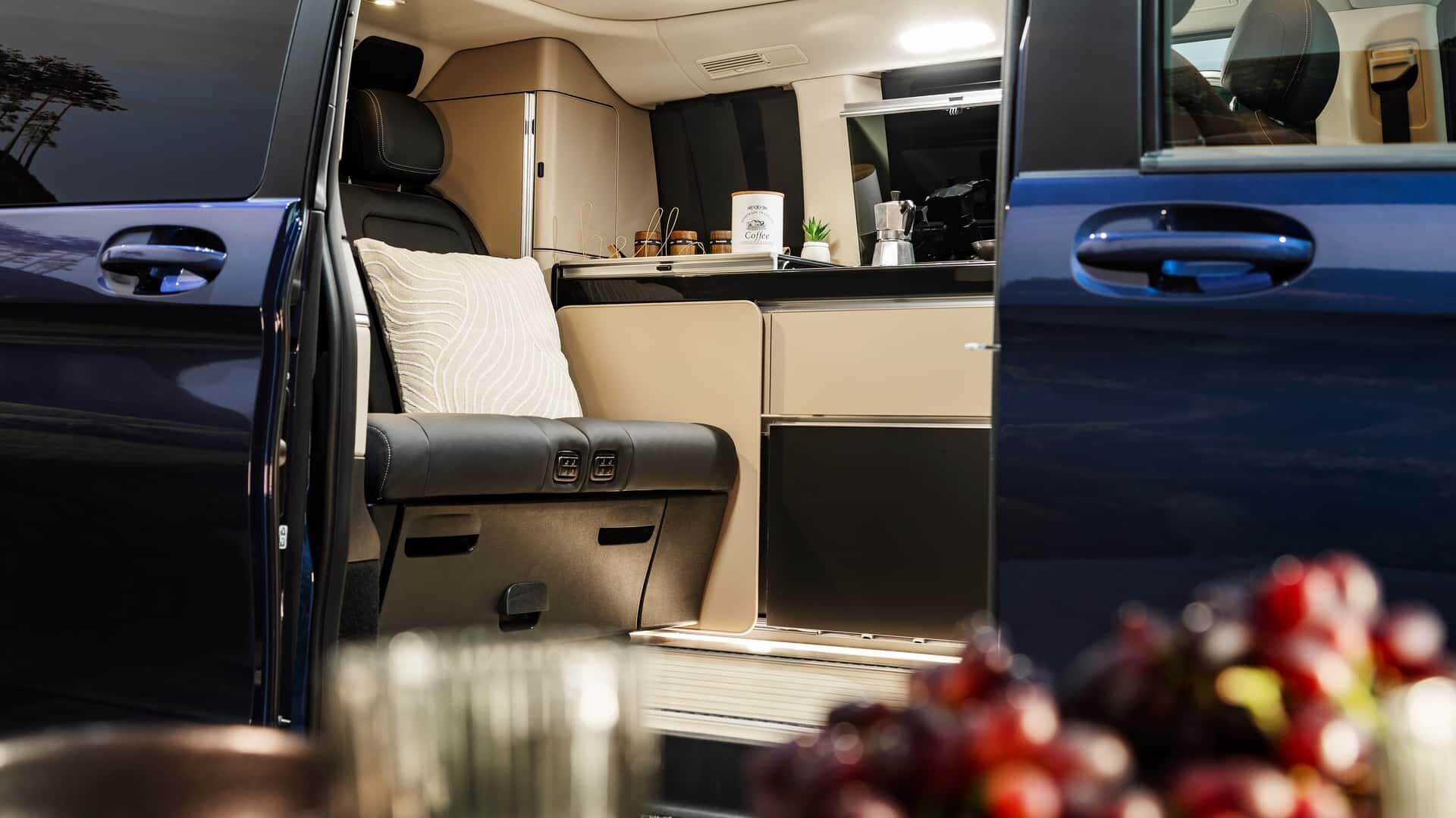 Interiören i alla skåpbilar är utrustad med det senaste infotainmentsystemet MBUX. Vito / eVito har nu en 5,5-tums färginstrumentdisplay och en 10,25-tums pekskärm, medan V-Class / V-Class Marco Polo och EQV ståtar med med två 12,3-tumsskärmar.
