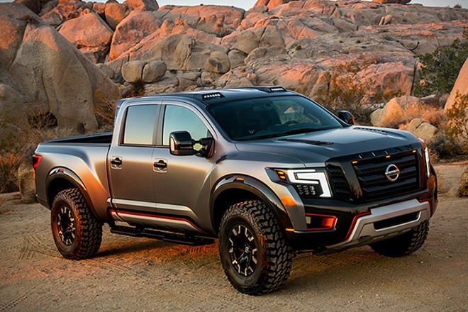 Nissan Titan Warrior Concept je naravnost ‘brutalen’ terenski pick-up. Osnovan je na seriji Titan XD, od katere je za kar 15 centimetrov širši. Dizajn Titan Warriorja je poln ostrih linij, zaradi česar je videti agresivno in nastopaško. Nameščene ima posebne blažilnike z notranjim obhodnim rezervoarjem, ki so bili še dodatno prilagojeni za daljše poti in udobno vožnjo na cesti. Prototipna prednja os je podaljšana in ima dodatno prilagojene roke in ostale dele podvozja.