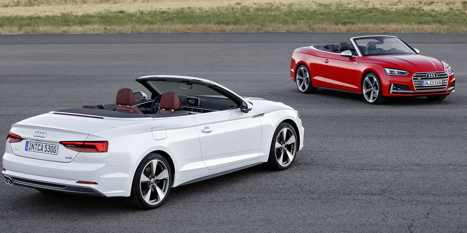 Tu sta novi Audi A5 in S5 Cabriolet. Platnena streha ostaja (novost je odpiranje z enim dotikom) – odpiranje traja 15, zapiranje pa 18 sekund, ‘modrček’ pa lahko odvrže pri hitrostih do 50 km/h – zato pa sta lažja (v povprečju za 40 kilogramov) in večja kot predhodnika.