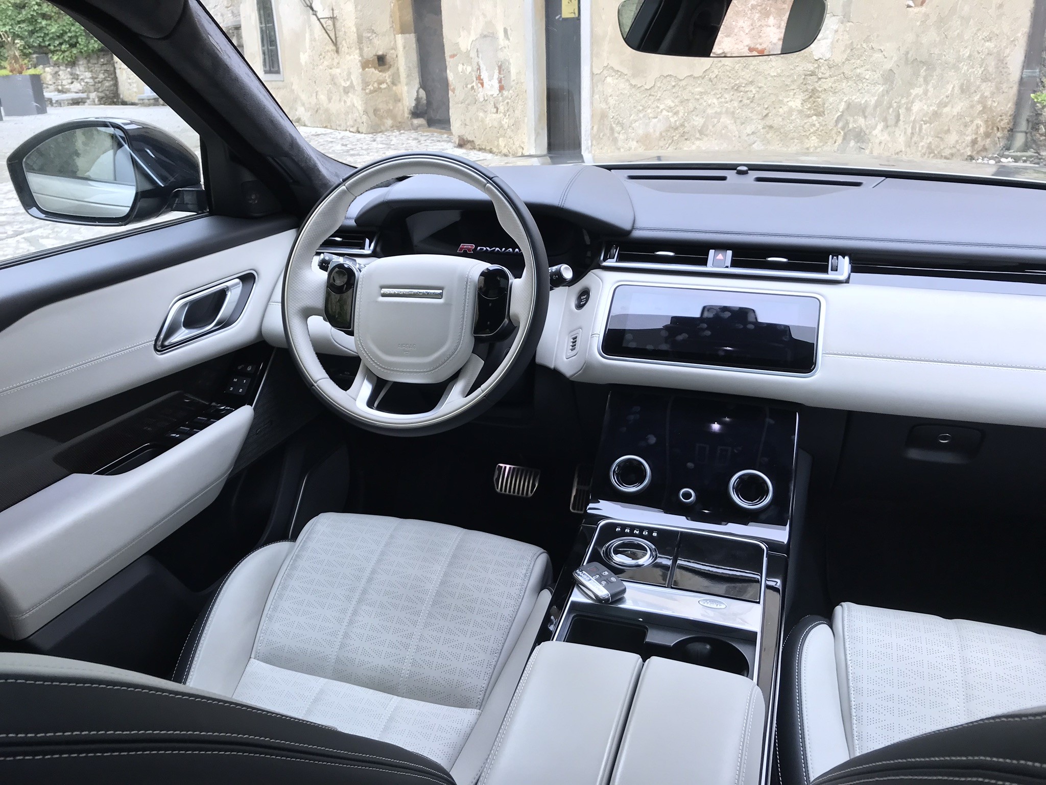 Interiören i Range Rover Velar är inriktad på minimalismKonstruktörerna har reducerat antalet strömbrytare som krävs till ett absolut minimum. Som ett resultat styrs alla enheter i bilen via systemet Touch Pro Duo, som de utgör två 10-tums pekskärmarInuti hittar du sofistikerade material, och det bästa är kombinationen av läder och Alcantara. Som brukligt är för Range Rover-märket kan vi nu välja mellan flera färgkombinationer.