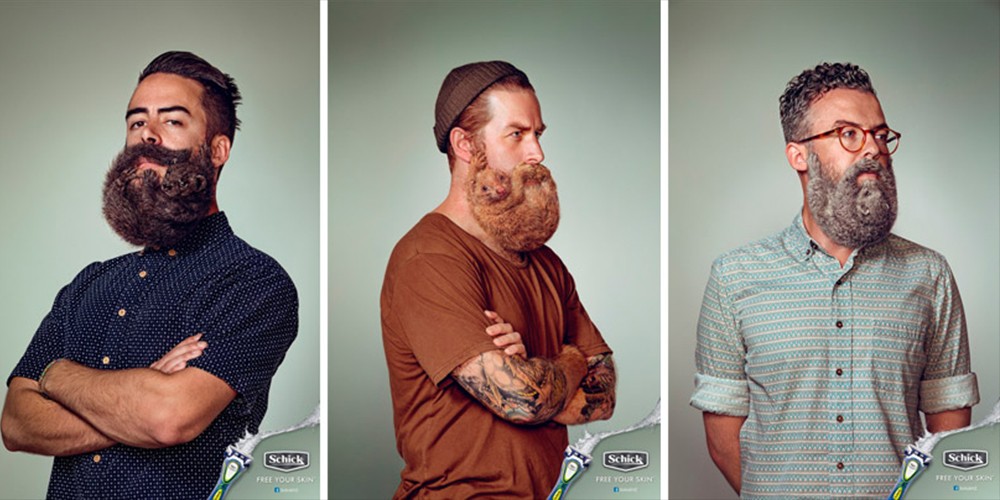 Trend nošenja brade je kar hitro obnorel svet, zato se je podjetje Schick domislilo ustvariti zanimivo kampanjo, z namenom, da bi moške spodbudili k rednem striženju in negi dlak na obrazu. Za svojo najnovejšo reklamno kampanjo so združili moči z “Y&R New Zealand” in s tem ustvarili humoristično a hkrati bizarno serijo fotografij moških z “zverinskimi” bradami. Kampanja nosi sporočilo, naj moški poskrbijo za svoje brade, preden le-te postanejo neukrotljive, divje zverine.