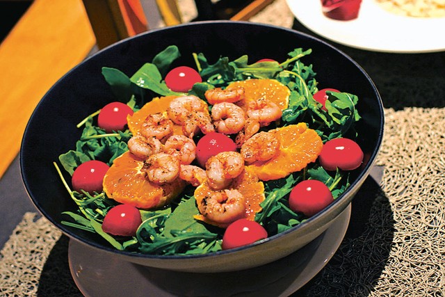 INGREDIENSER FÖR 2 PERSONER:100 g färsk okra2 tsk olivolja2 nypor mald peppar2 teskedar balsamvinäger200 g ruccola8 körsbärstomater8 dkg räkor1 apelsinnypa salt FÖRBEREDELSE: Skiva ändarna på de rena okrafrukterna...