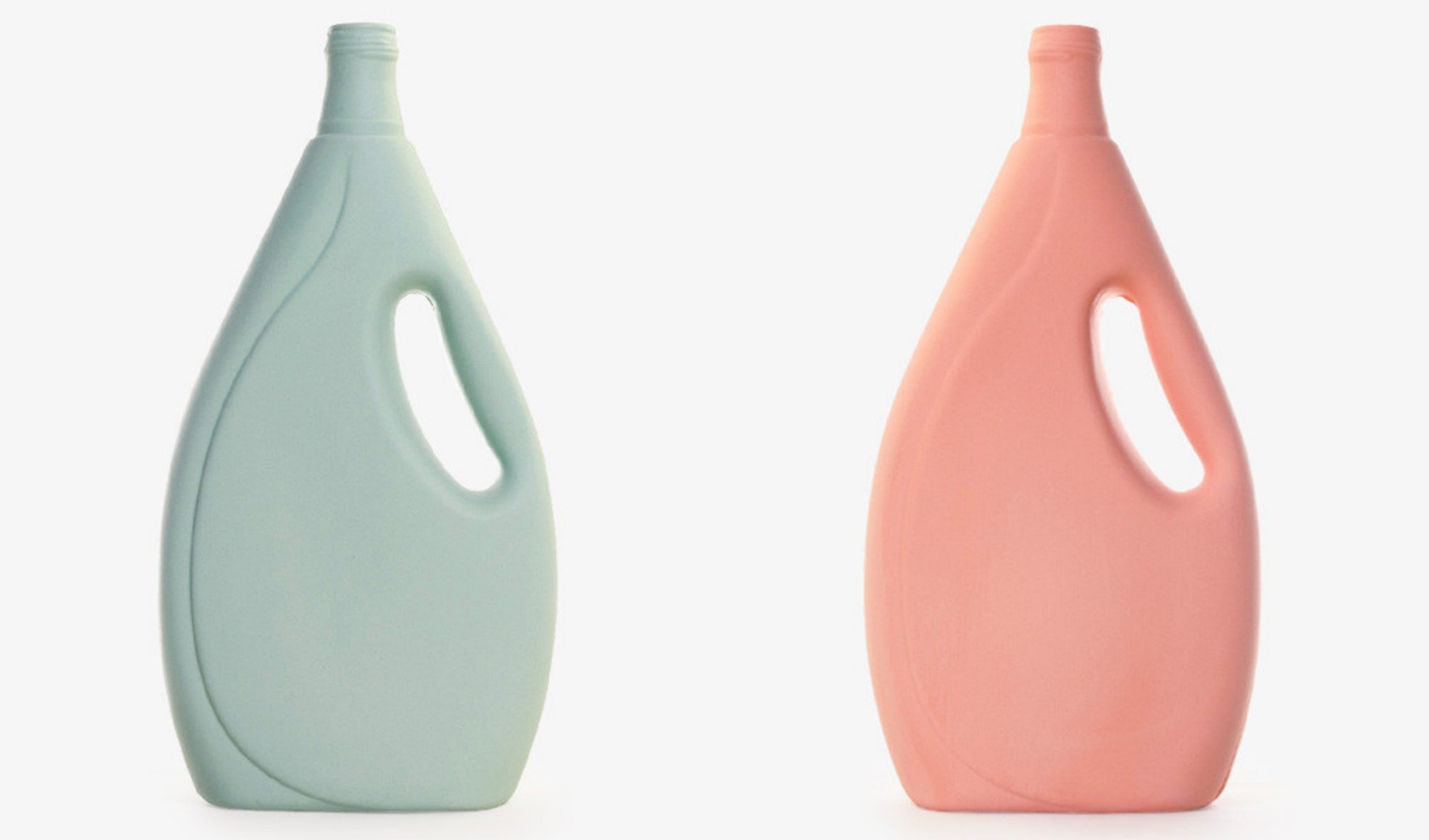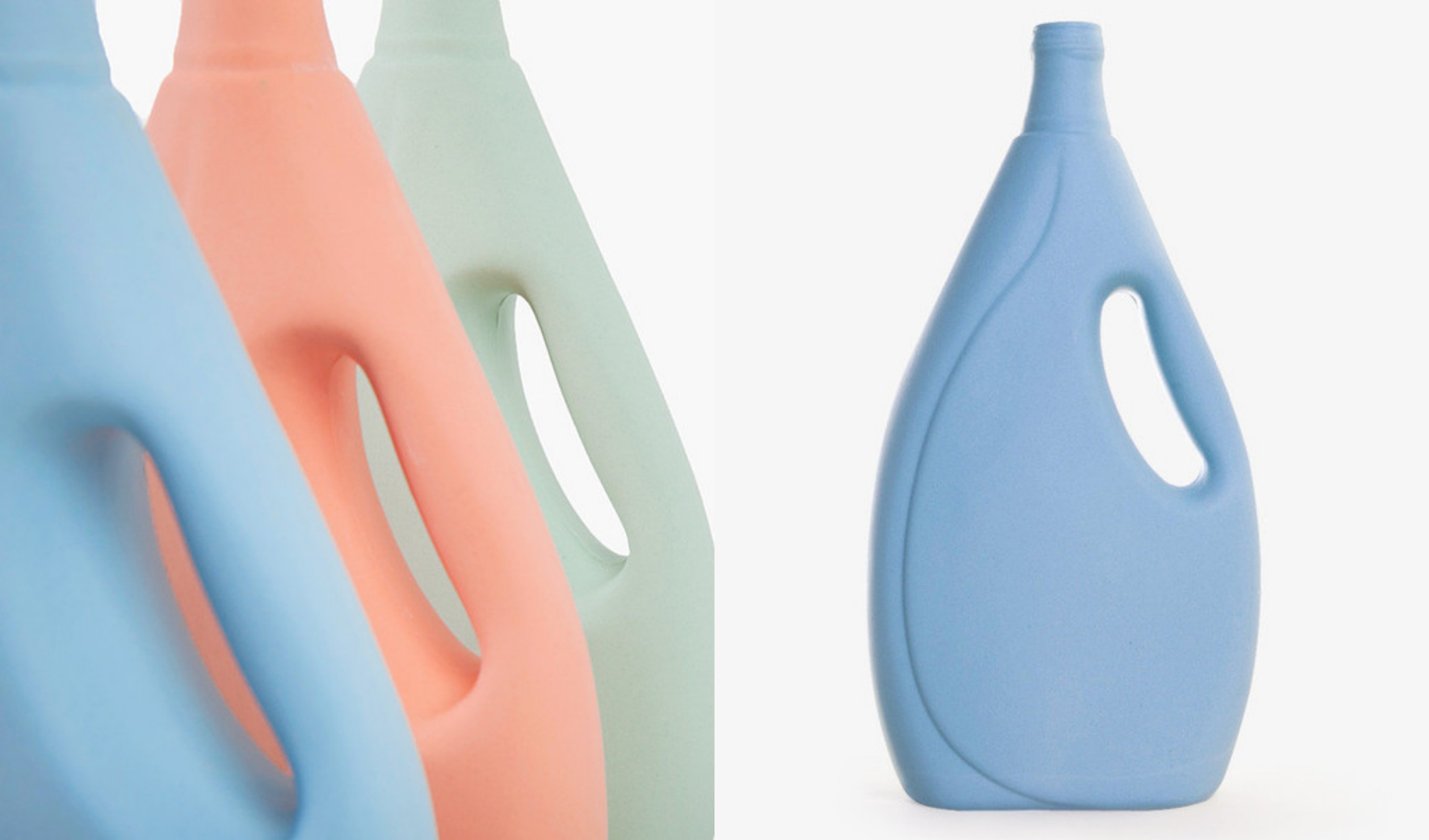 Den holländska designern Foekje Fleur van Duin har hämtat tvättmedelsflaskor från smutsiga Rotterdam-kanaler och förvandlat dem till hållbara, porslinsbelagda pastellkonstverk.