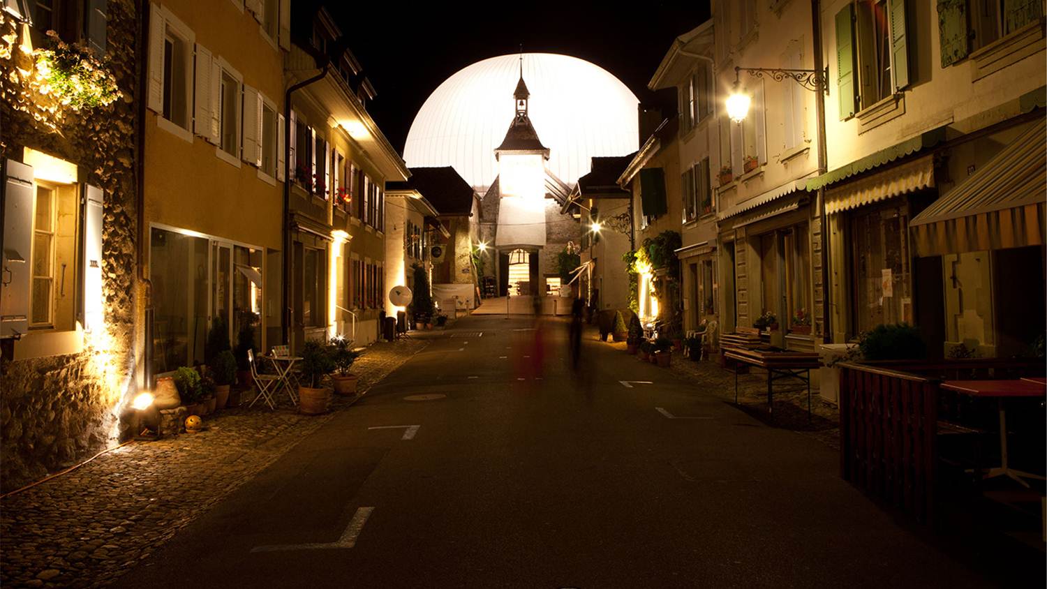 Oblikovalci studia Alice so ustvarili gromozansko prosojno poloblo, ki v soju večernega spektakla daje iluzijo lune nad srednjeveškim mestom. Pokrivajoč gledališče s 700 sedišči nudi odlično akustiko in ščiti pred vremenskimi vplivi, kot sta dež in močna sončna svetloba. V prihajajočem letu je načrtovana nadgradnja tega nenavadnega pokrivala, ki bo omogočila popolno lebdenje, visoko v zraku in tako resnično zrcalila čarobnost luninega sija.