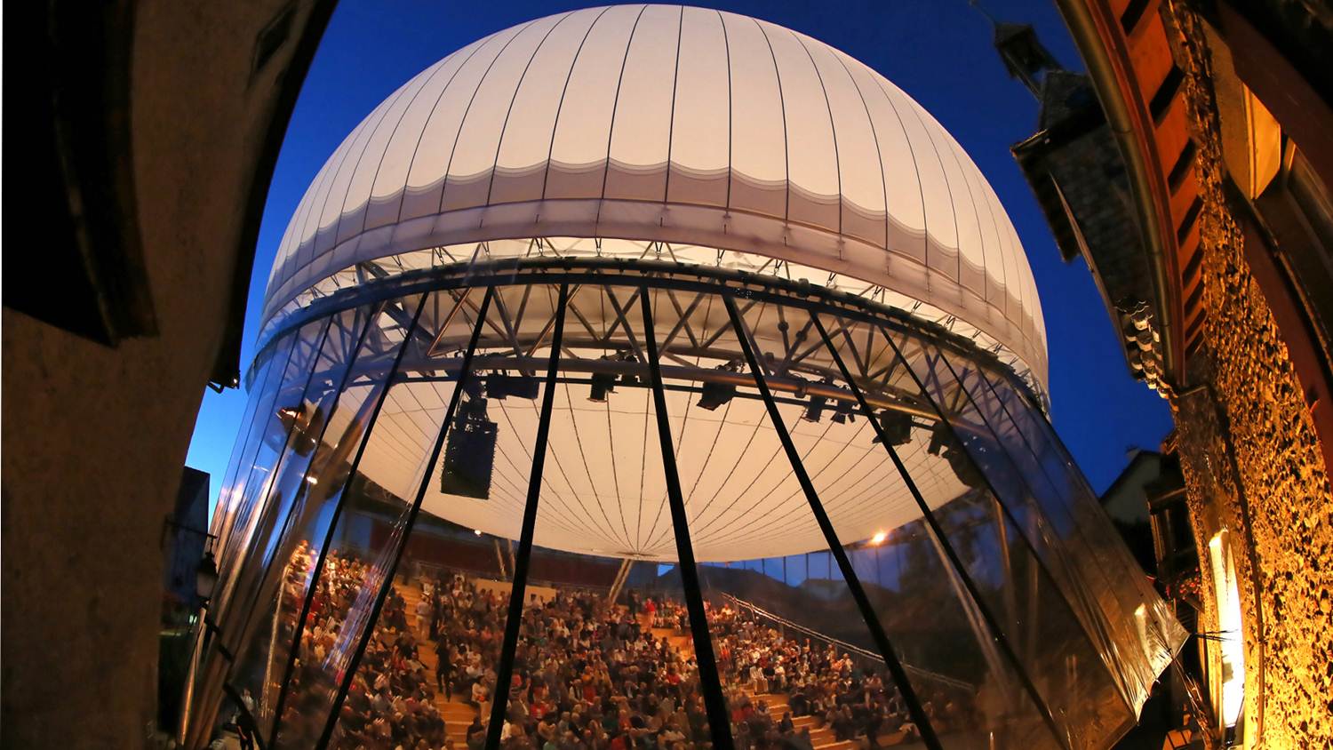 Oblikovalci studia Alice so ustvarili gromozansko prosojno poloblo, ki v soju večernega spektakla daje iluzijo lune nad srednjeveškim mestom. Pokrivajoč gledališče s 700 sedišči nudi odlično akustiko in ščiti pred vremenskimi vplivi, kot sta dež in močna sončna svetloba. V prihajajočem letu je načrtovana nadgradnja tega nenavadnega pokrivala, ki bo omogočila popolno lebdenje, visoko v zraku in tako resnično zrcalila čarobnost luninega sija.