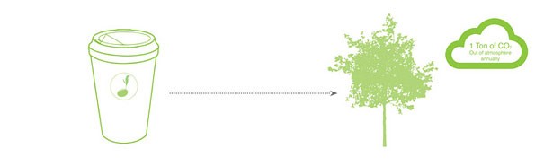 Företag Reduce. Reuse. Grow. je izdelalo posebne papirnate lončke za kavo (s teksturo palačink), ki so celo več kot biorazgradljivi in za okolje nevtralni, saj vsebujejo še frön, s čimer na okolje delujejo celo blažilno. Vse te lončke bi, posejane, samo v Ameriki, kjer letno porabijo preko 146 milijonov papirnatih lončkov za kavo (in so del problema), v letu dni absorbirale preko ene tone ogljikovega dioksida v atmosferi in tako postale del rešitve.