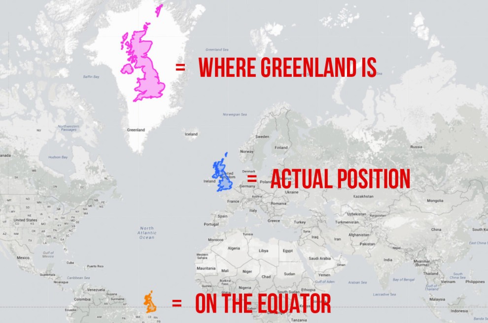 Visste du att vår bild av världen är förvriden? Efter att ha sett dessa bilder kommer du aldrig att se världen på samma sätt igen! Anledningen till att vissa länder på kartan är större eller mindre än andra, även om de inte är det, är den antediluvianska tvärgående Mercatorprojektionen eller. en cylindrisk kartprojektion där meridianer och paralleller är raka linjer som skär varandra i räta vinklar och som gjorde det möjligt för sjöfarare att plotta sin kurs som raka linjer. Resultatet av att överföra jordens yta till papper är dagens missuppfattning om storleken på vissa delar av världen. Projektionen av den tredimensionella världen på papper har sitt pris, och vi betalar det med en förvrängd bild av världen än idag, även om sjöfartsindustrin inte längre använder klassiska kartor för navigering. Det är därför det fortfarande hänger sådana kort i skolorna och bland annat skapar de falskt intrycket av att Ryssland och USA är så stora.